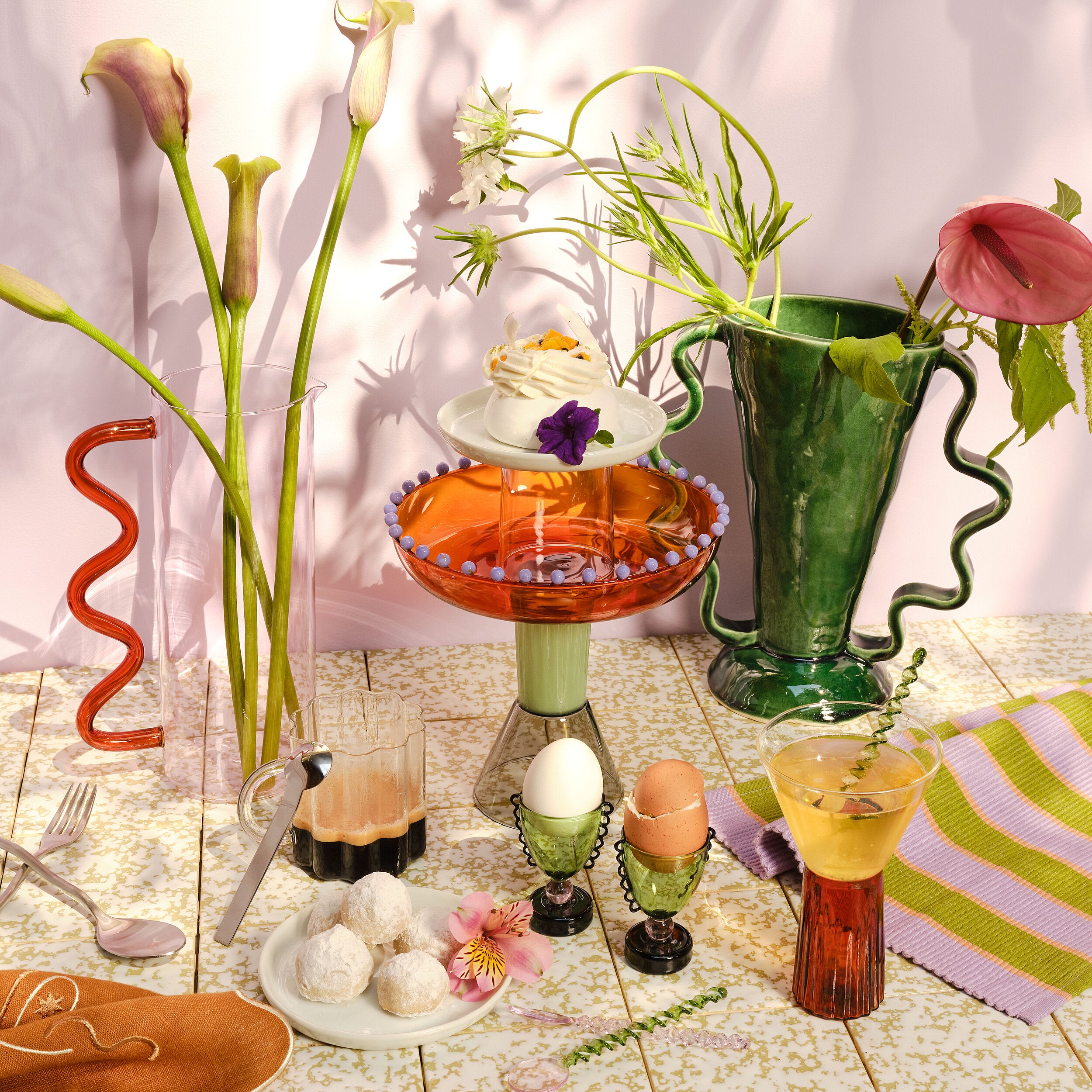 A Los Angeles-based ceramicist crafts each piece individually by hand in her backyard studio. With a modern touch, she references Venetian glass and 19th-century spongeware, blending them seamlessly into her work.