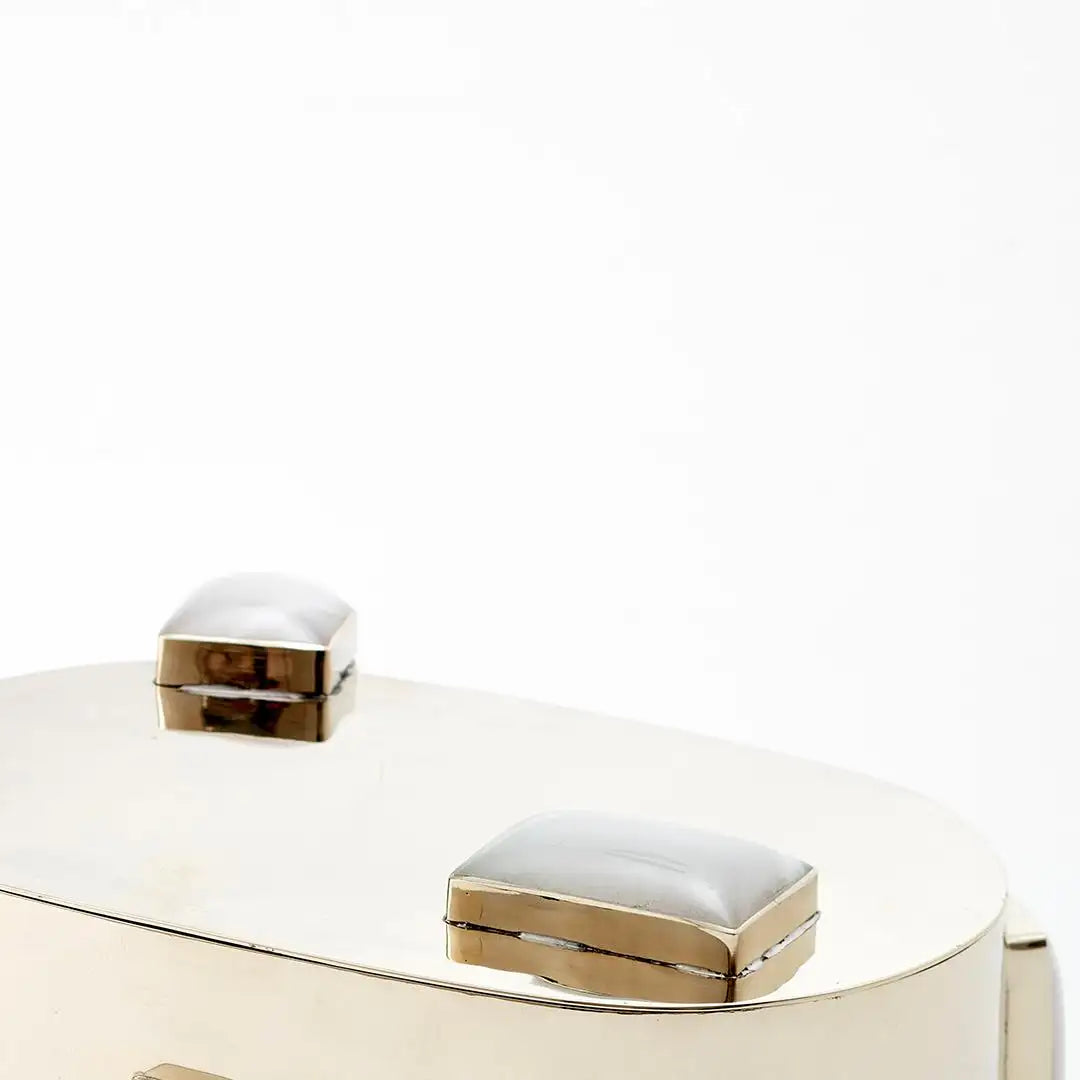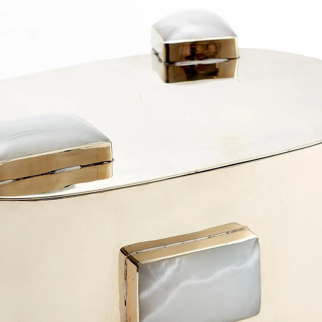 Glaciar onyx box is meticulously handcrafted by artisans in South America and is unique, using metals and natural stone.