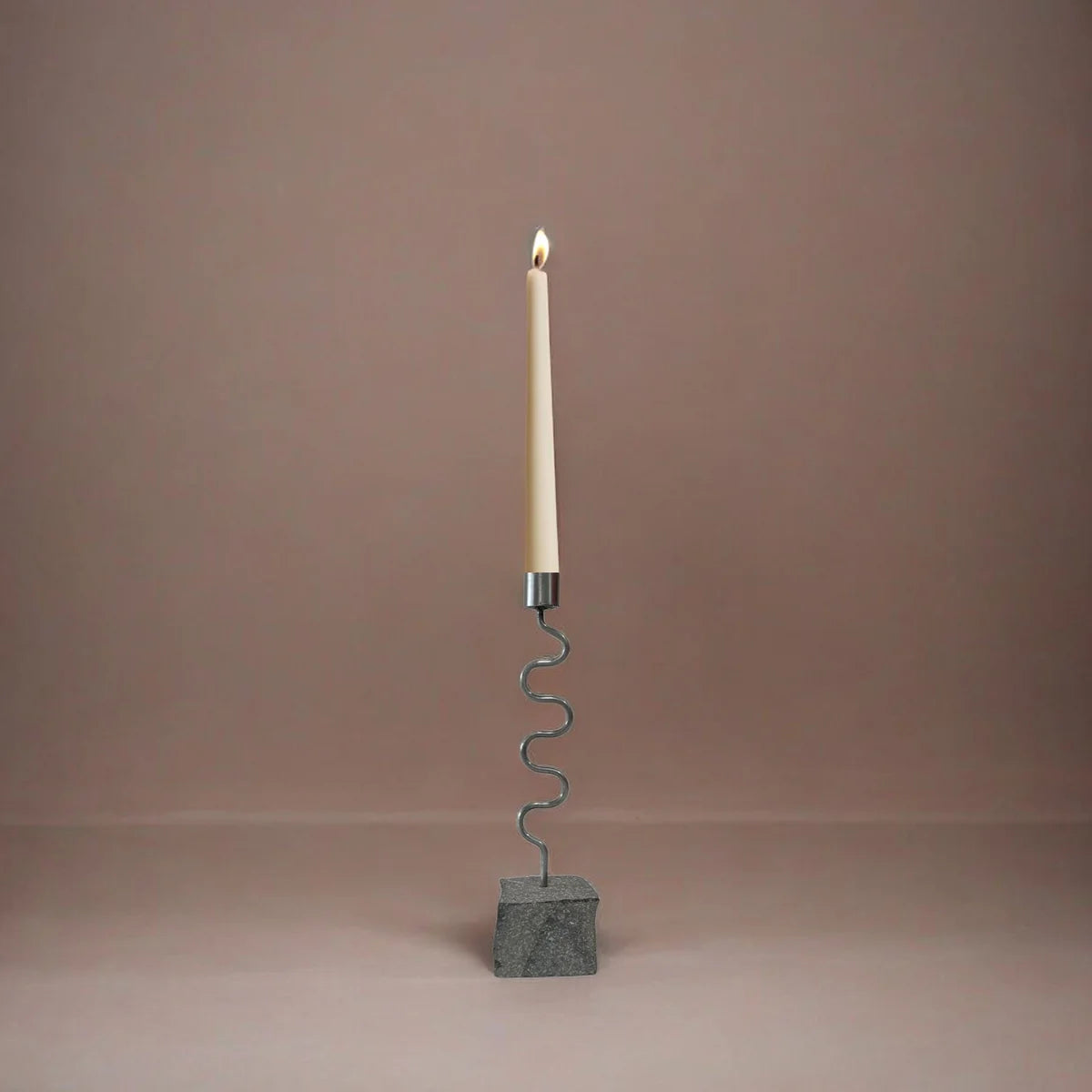 The Amara Candle Holder is made using river rock and raw iron. Both Stone and Metal craftsmen from Sabana Grande, Honduras collaborate to create this collection. Up to 8” taper.