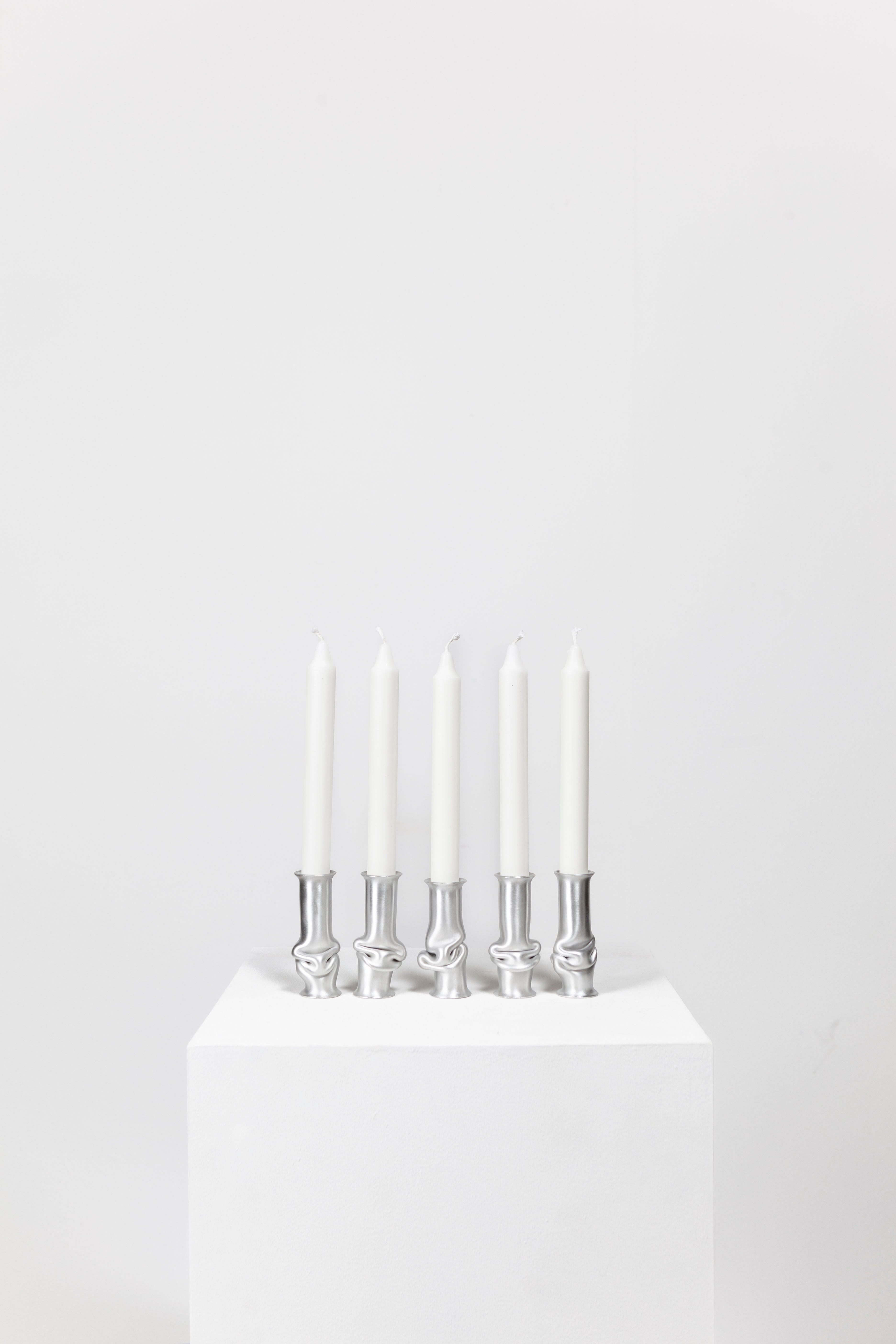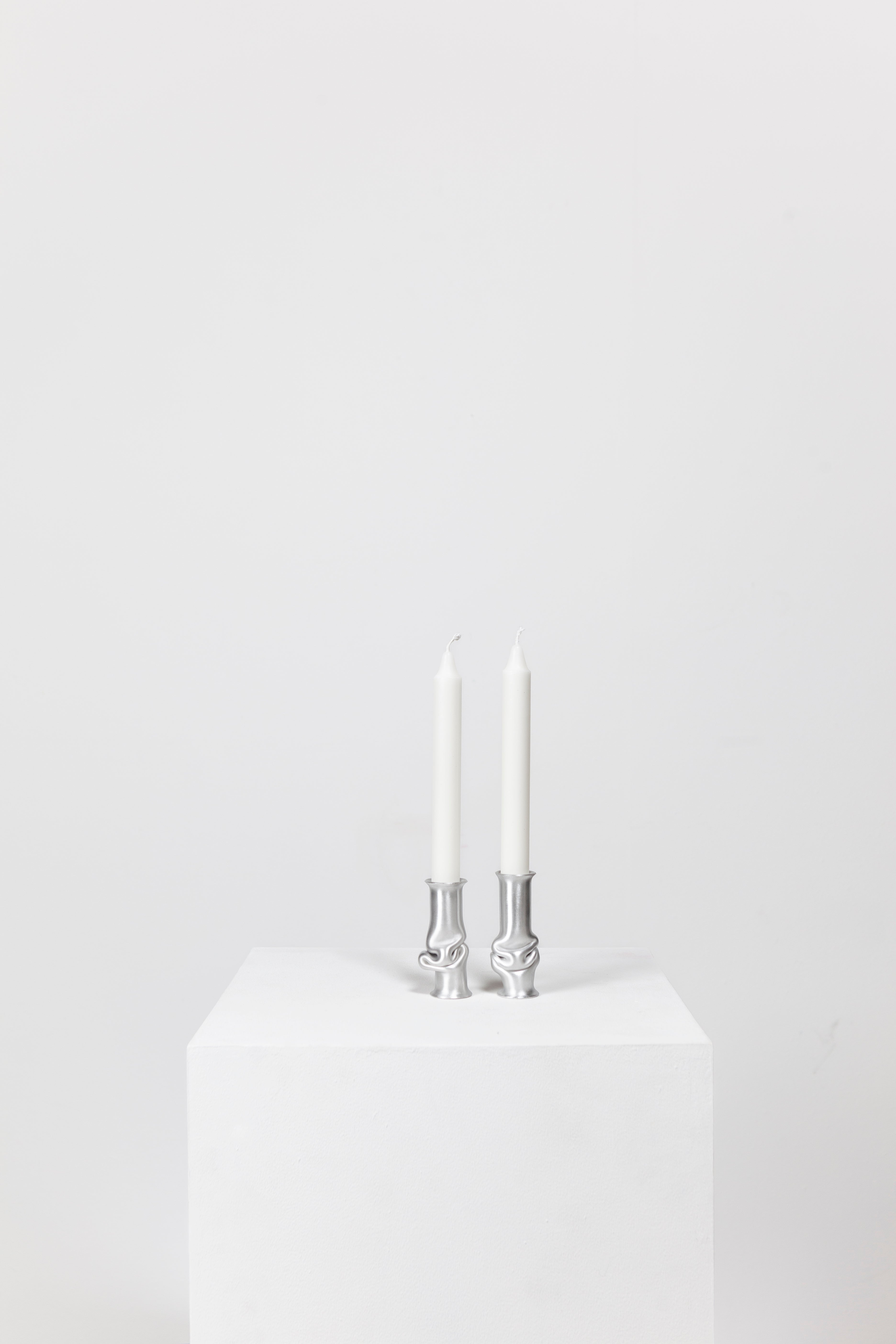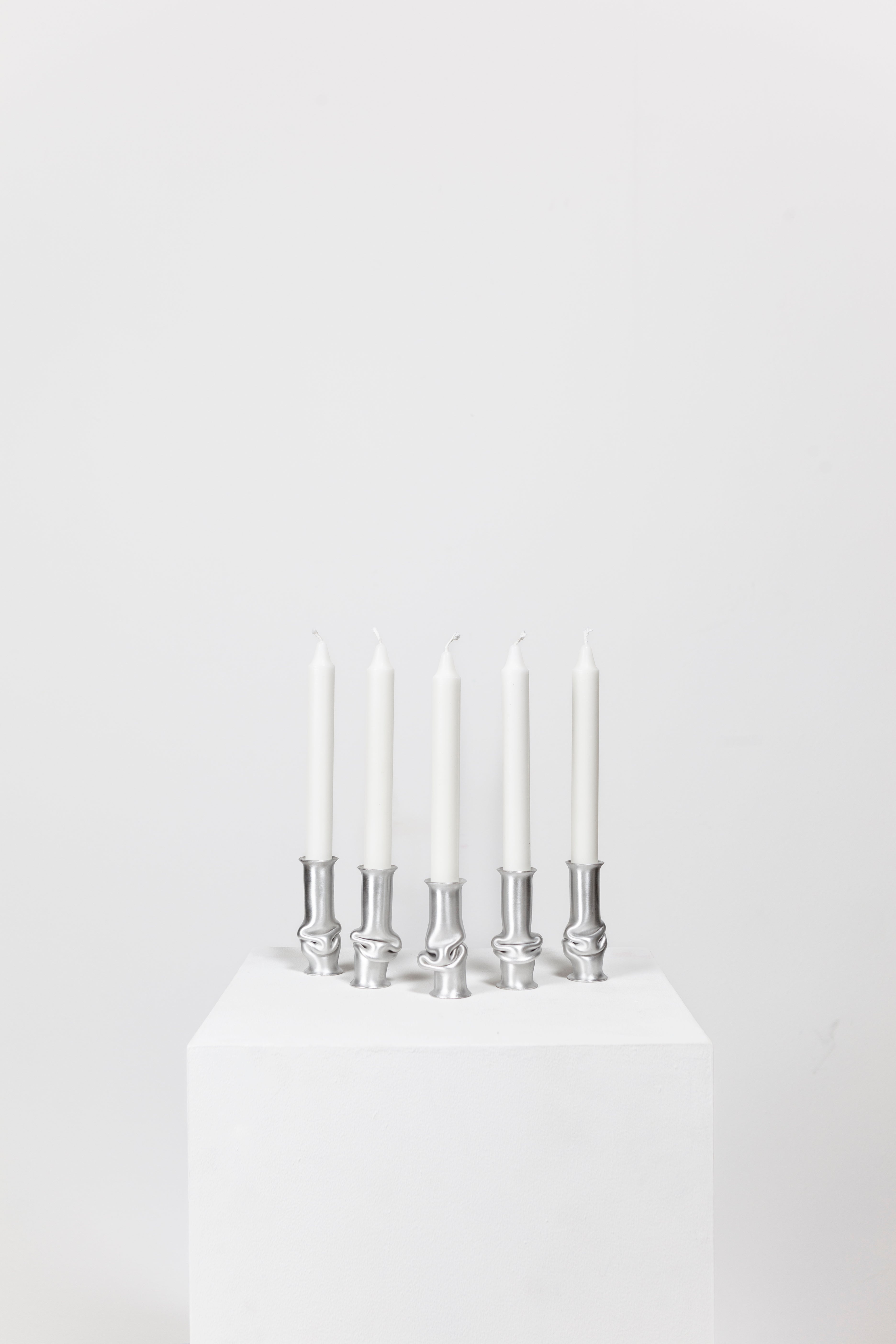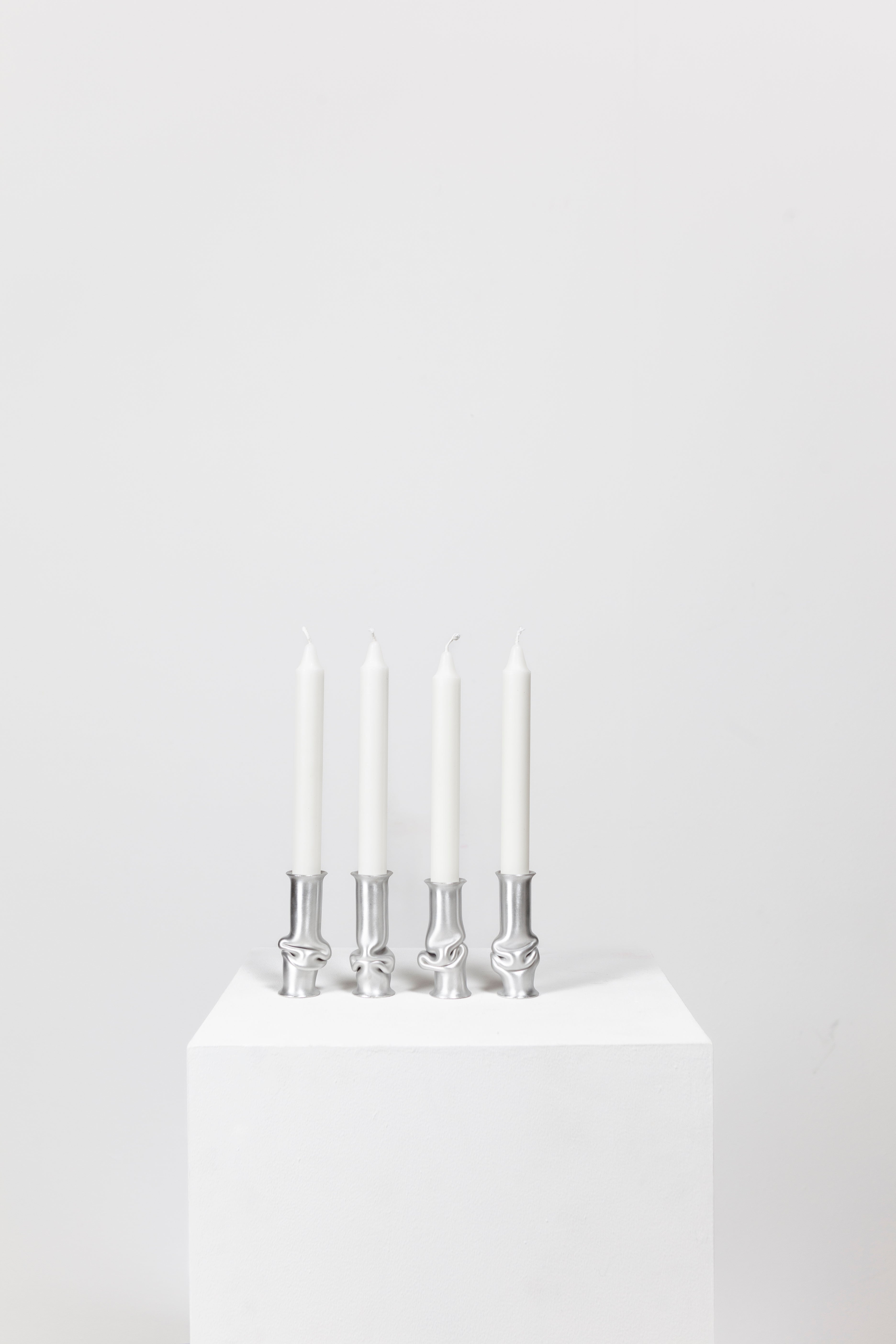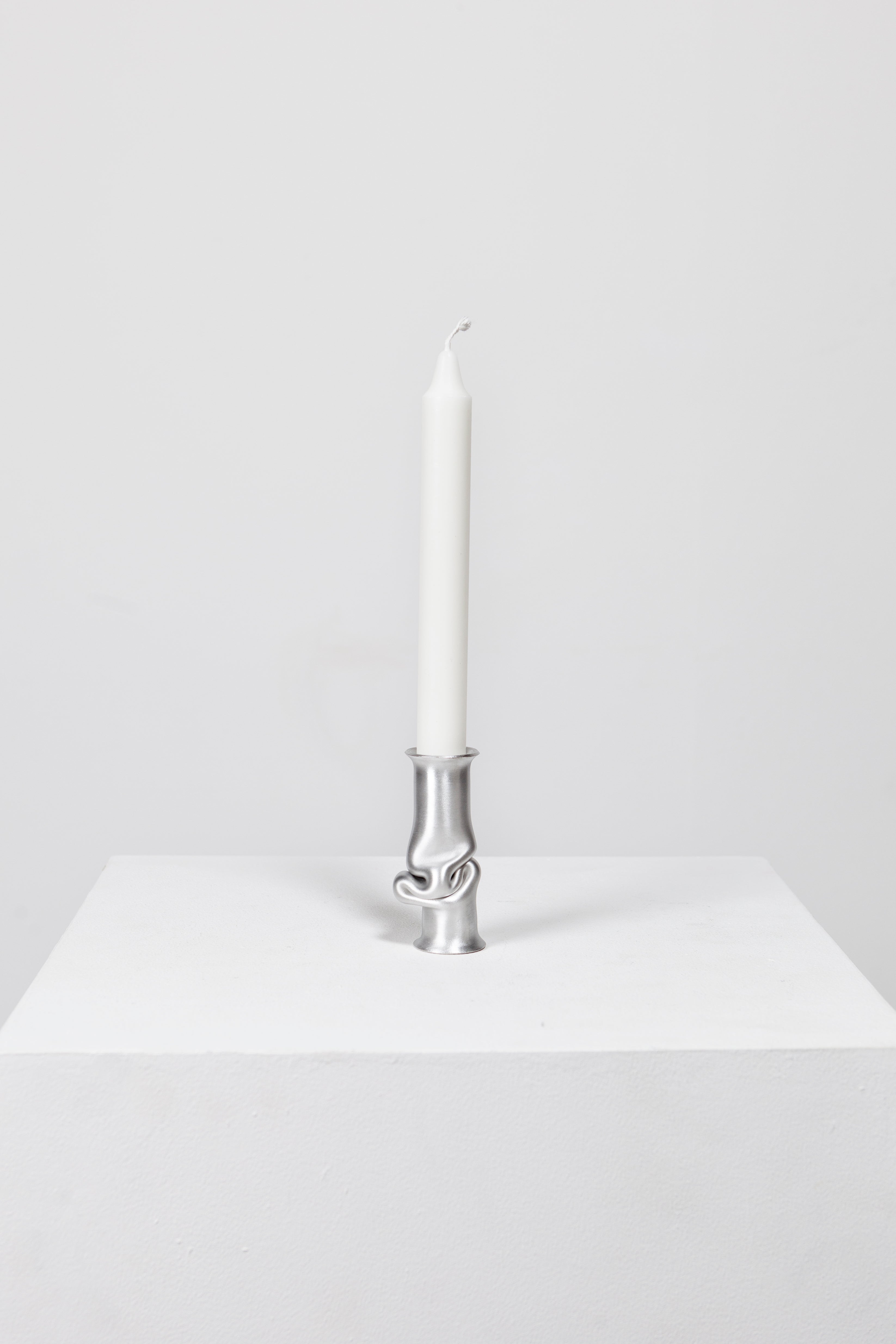 The Solo Candle Holder is made from aluminum tube. Each end is stretched out to form both a collar and a base without adding material. It is then heated up and pressed together, leaving space for the aluminum to take a unique shape. Available in different colors.