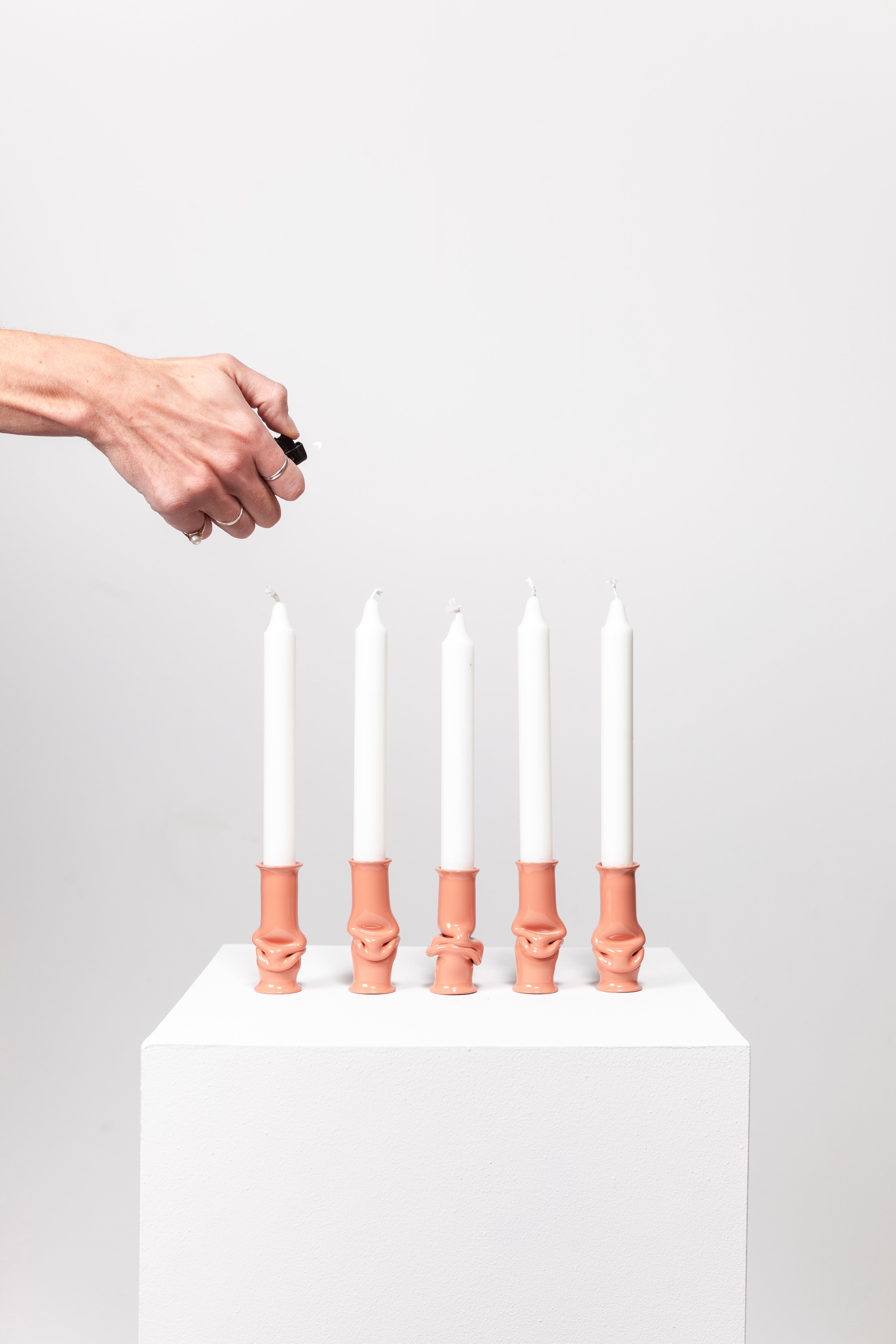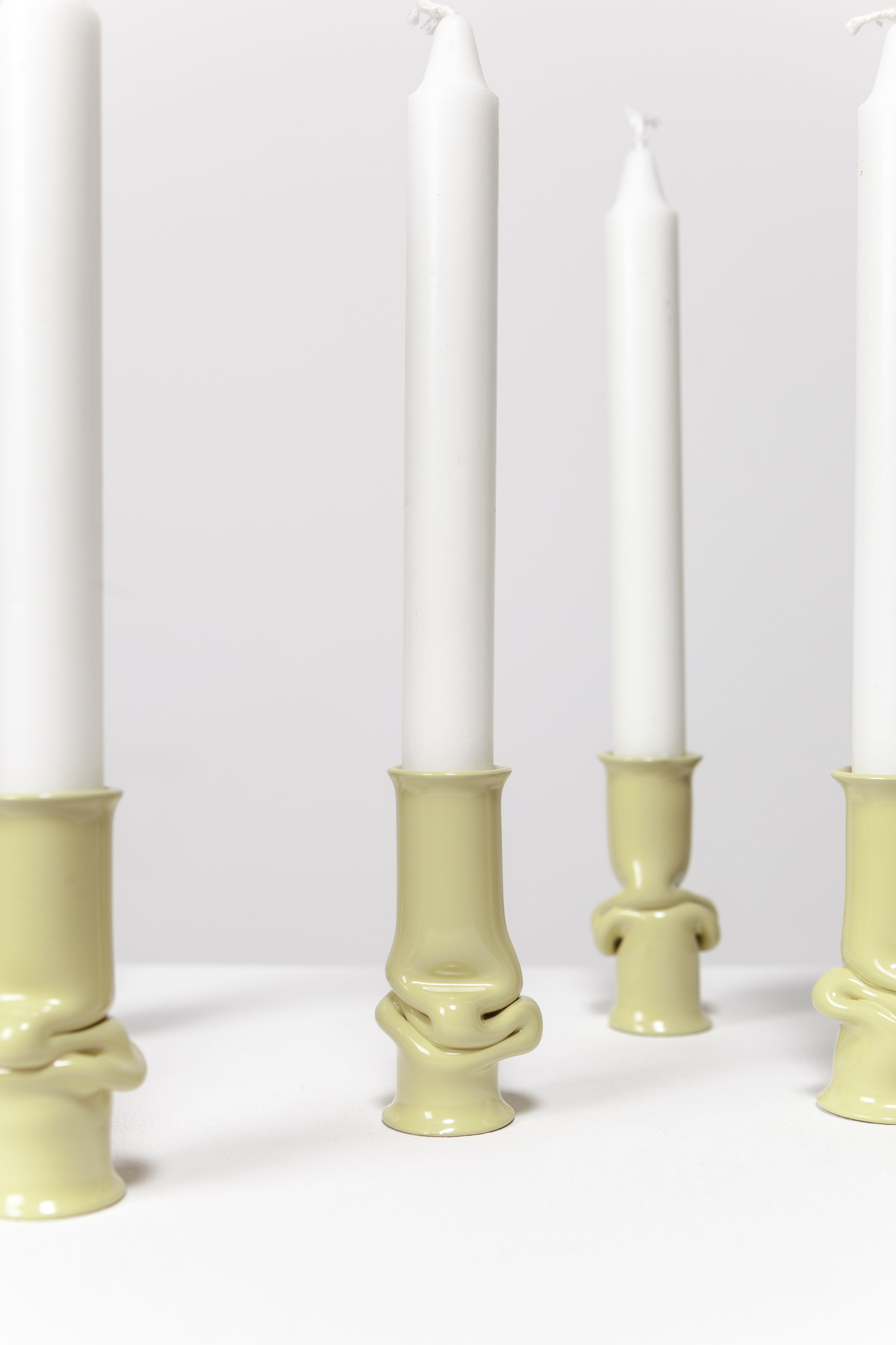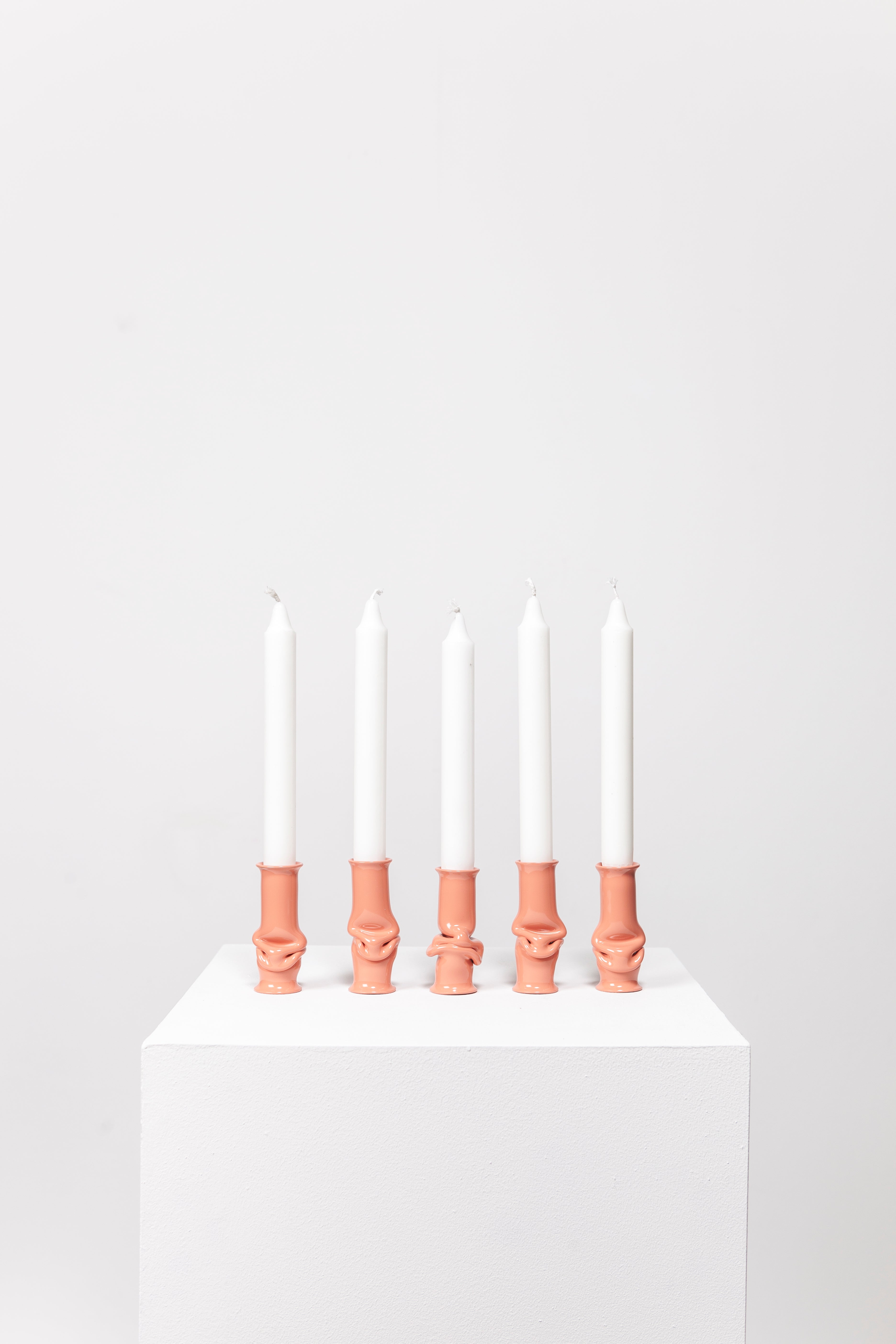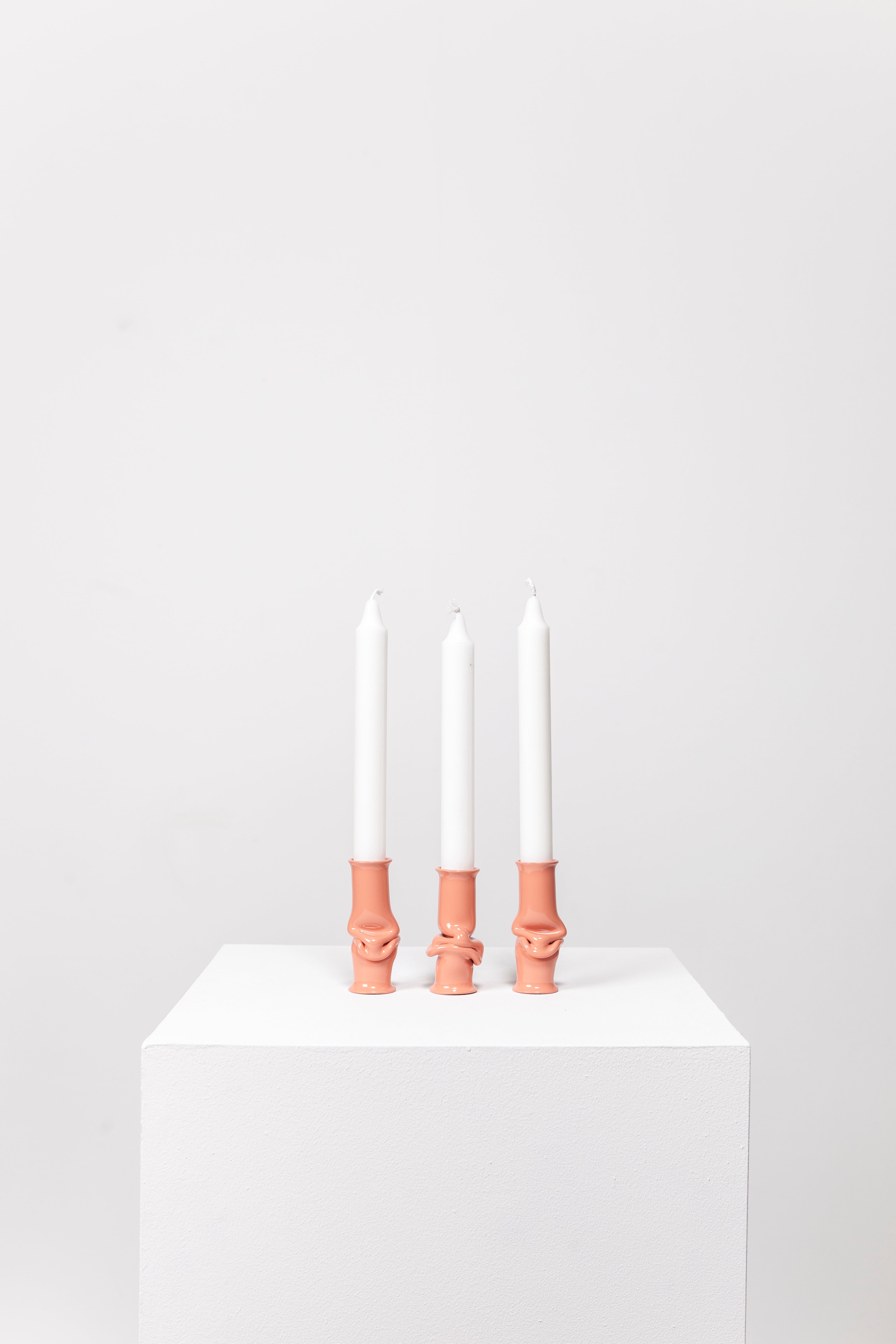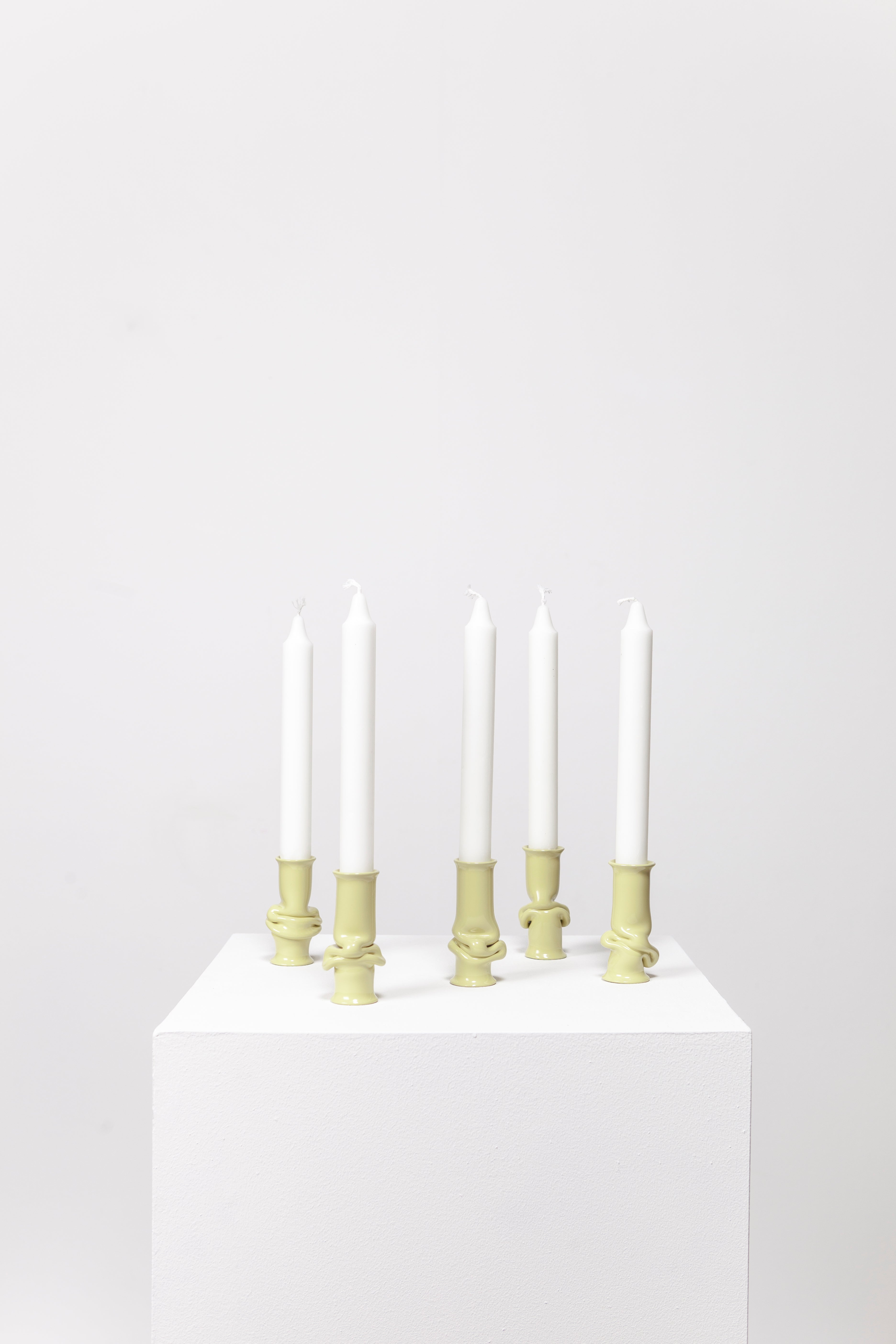 The Solo Candle Holder is made from aluminum tube. Each end is stretched out to form both a collar and a base without adding material. It is then heated up and pressed together, leaving space for the aluminum to take a unique shape. Available in different colors.