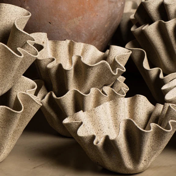 Cantina is crafted in clay and features an unglazed beige finish. As Cantina is unglazed- we do not recommend using it for food.