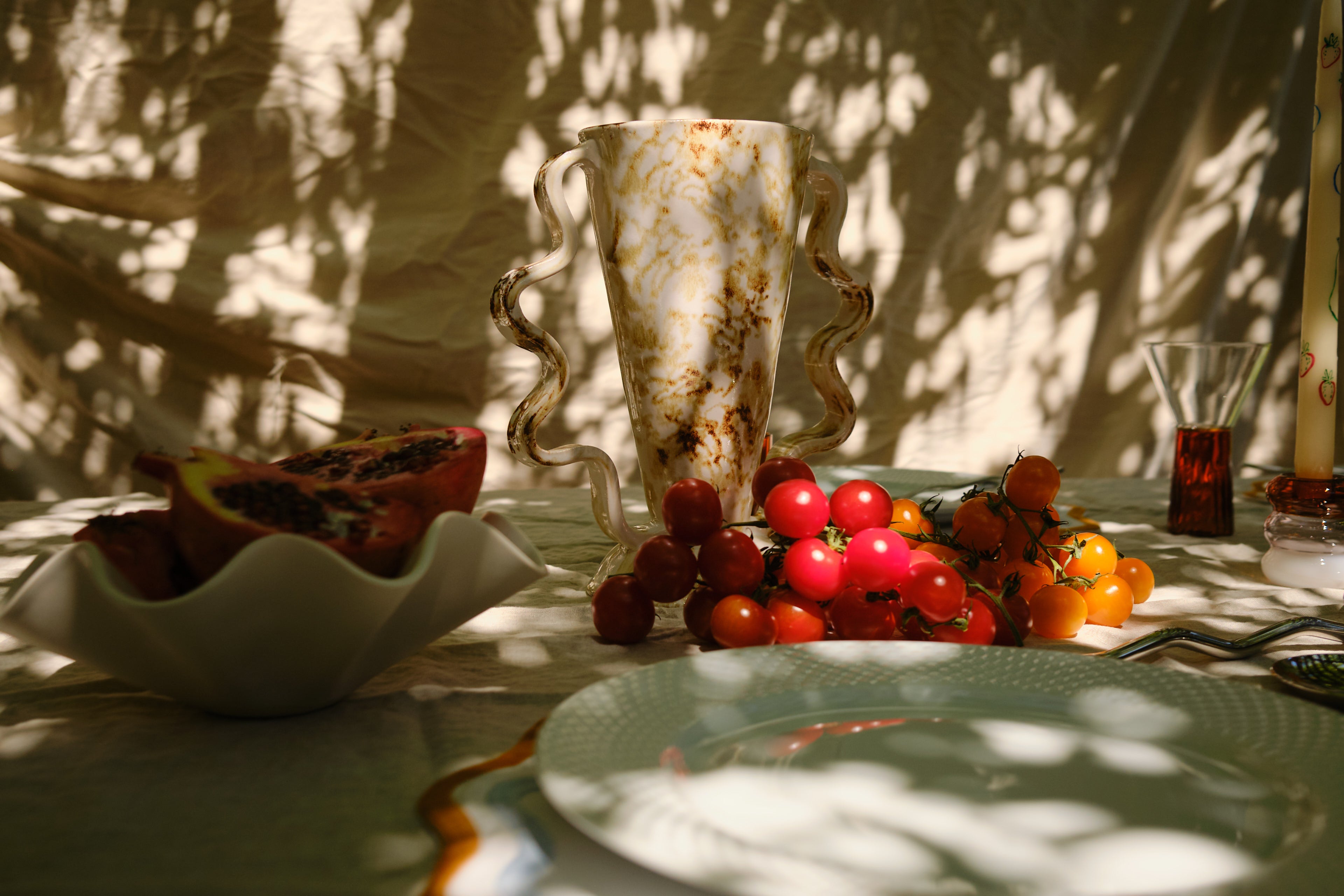 Handmade in Los Angeles, each vase is unique, made individually by hand in Morgan Peck's backyard studio. With a modern touch, she references Venetian glass and 19th-century sponge-ware, blending them seamlessly into her work.