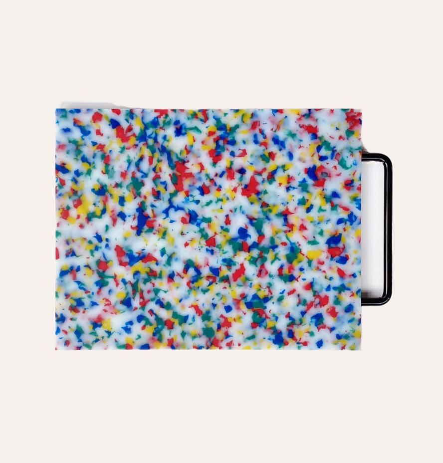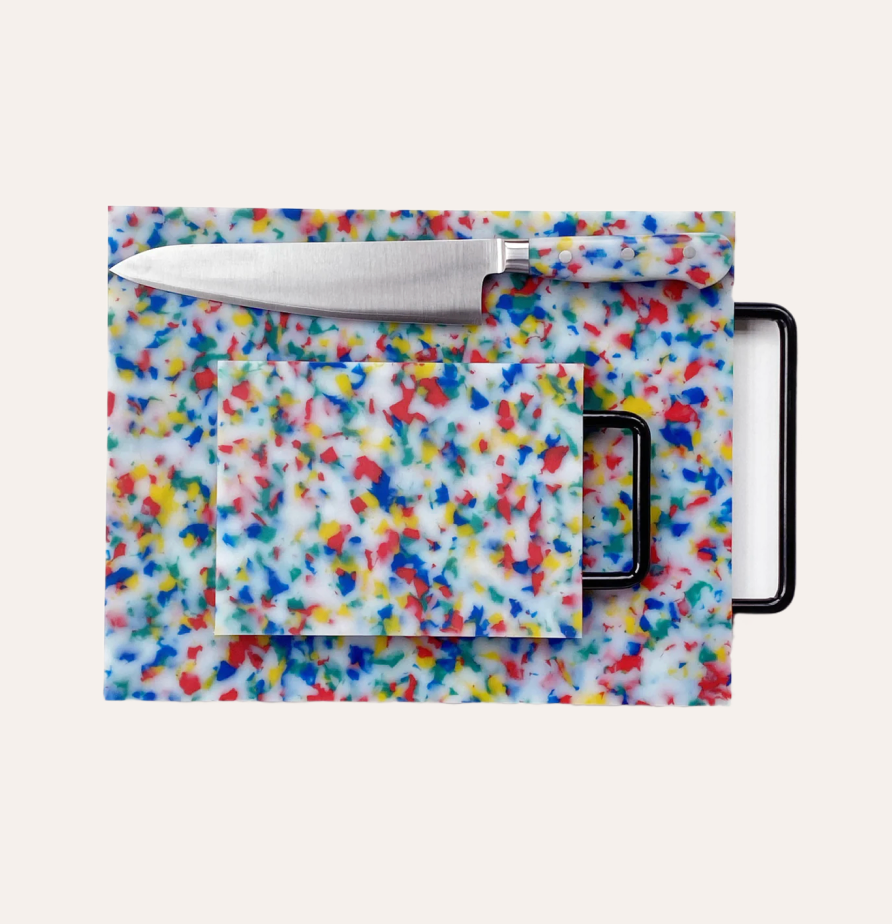 Are you tired of dull, lifeless cutting boards cramping your kitchen style? Say goodbye to bland chopping blocks and hello to a burst of color. Crafted with professional-grade plastic, this bad boy not only adds a pop of personality to your kitchen, but also brings some serious heft to your chopping game. Another thing we love? The easy-grab handle on the side.