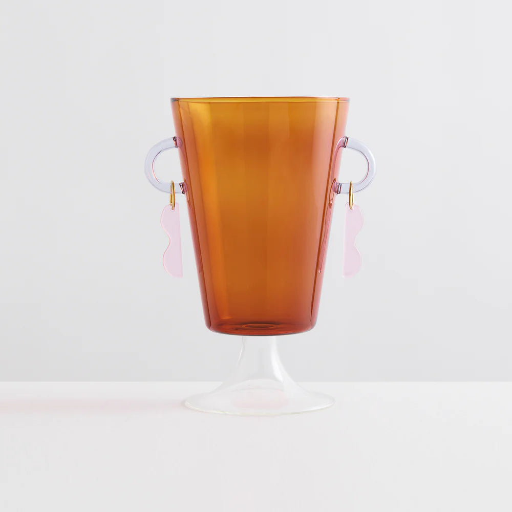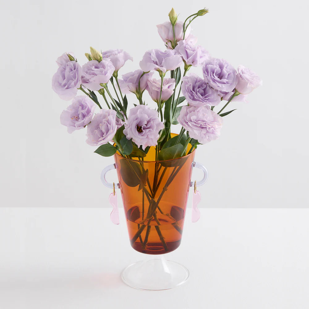 Introducing the Happy Vase, dressed to impress with its glittering glass earrings. Inspired by Napoleonic era vases from France, this charming piece adds a touch of elegance to any space.