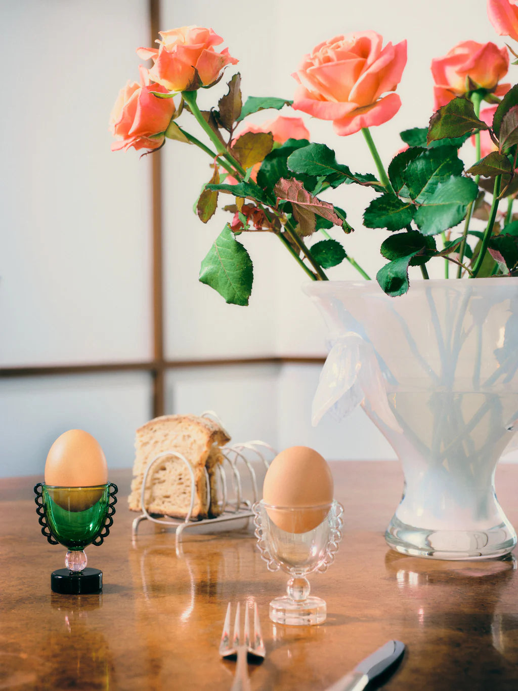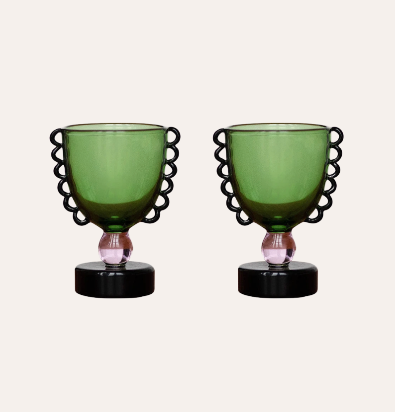 A set of two small multi-functional vessels. Think small shot glass, salt dish, cocktail pick holder...whatever your heart desires. We like to think of them as a throne for an egg. Sold as a set of two.