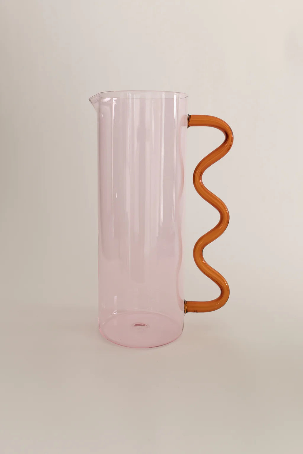 A borosilicate glass pitcher, for pouring water, juice, watering plants, holding flowers, or any other use you can think of.