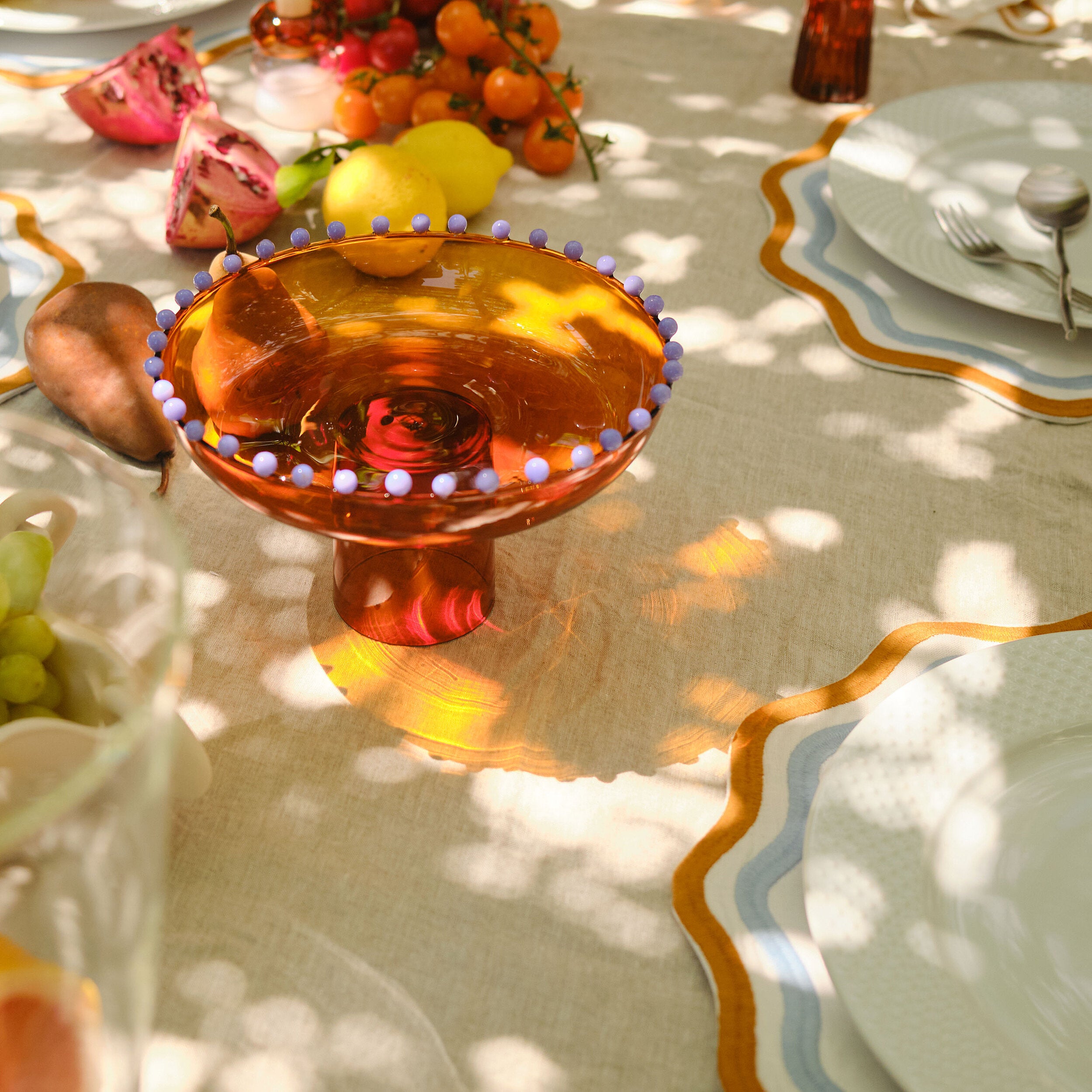 This Pearl Platter is crafted for the fanciest of soirées. Each glass pearl is meticulously formed and fired onto this high-quality serving piece. This platter is like the party hostess who never runs out of jokes – sophisticated and endlessly entertaining.