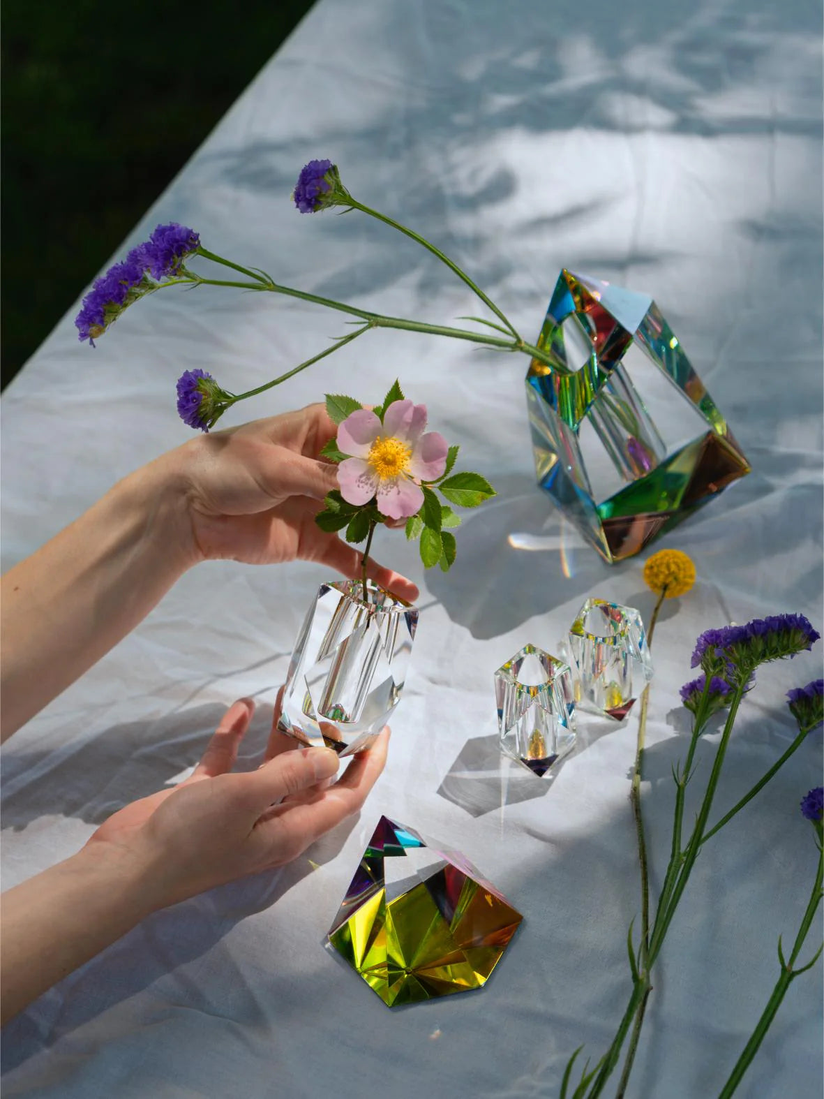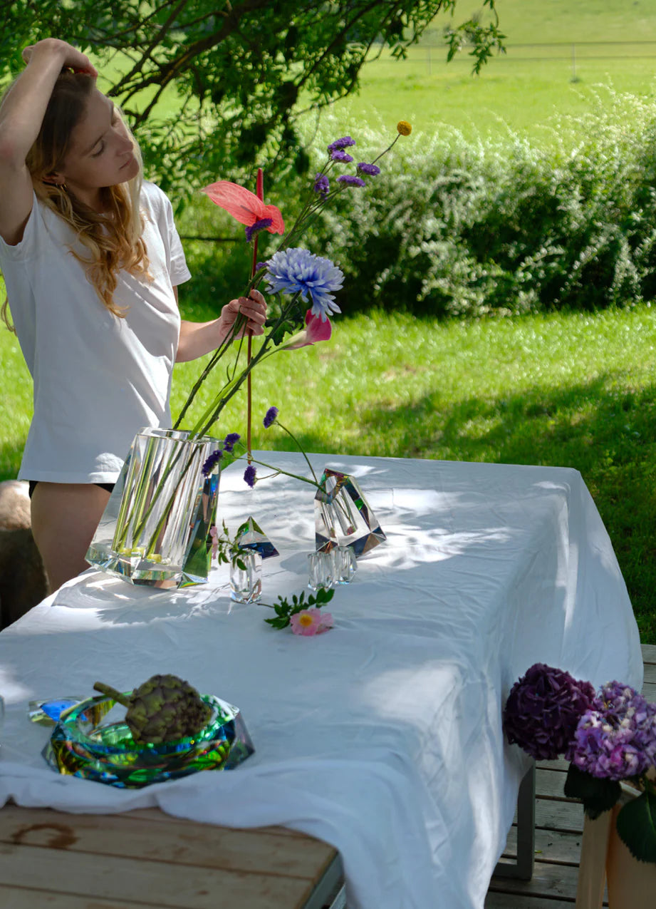 Who said vases need to stand up straight? This rebellious beauty sourced from Berlin leans into its artistic side, giving your florals the perfect stage. Think of it as architecture with attitude.
