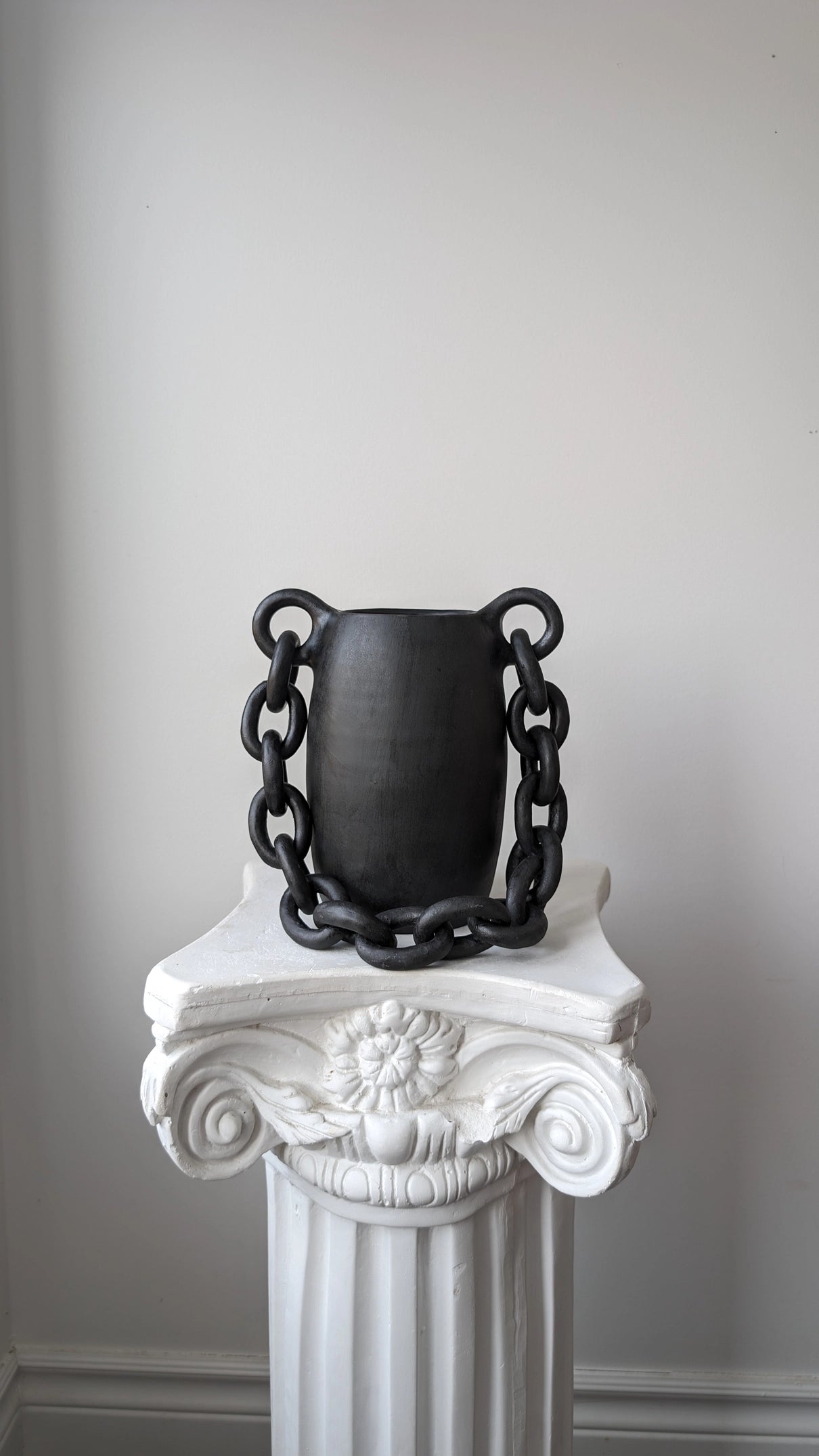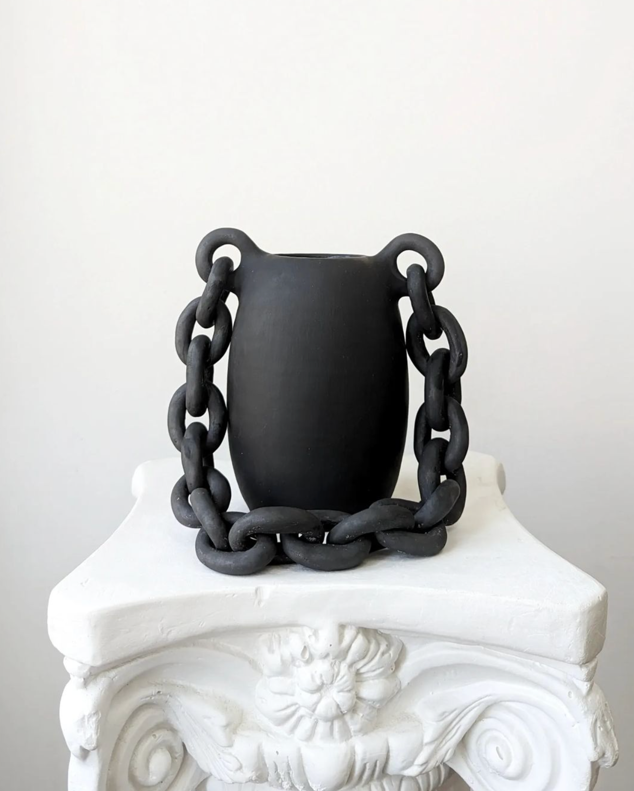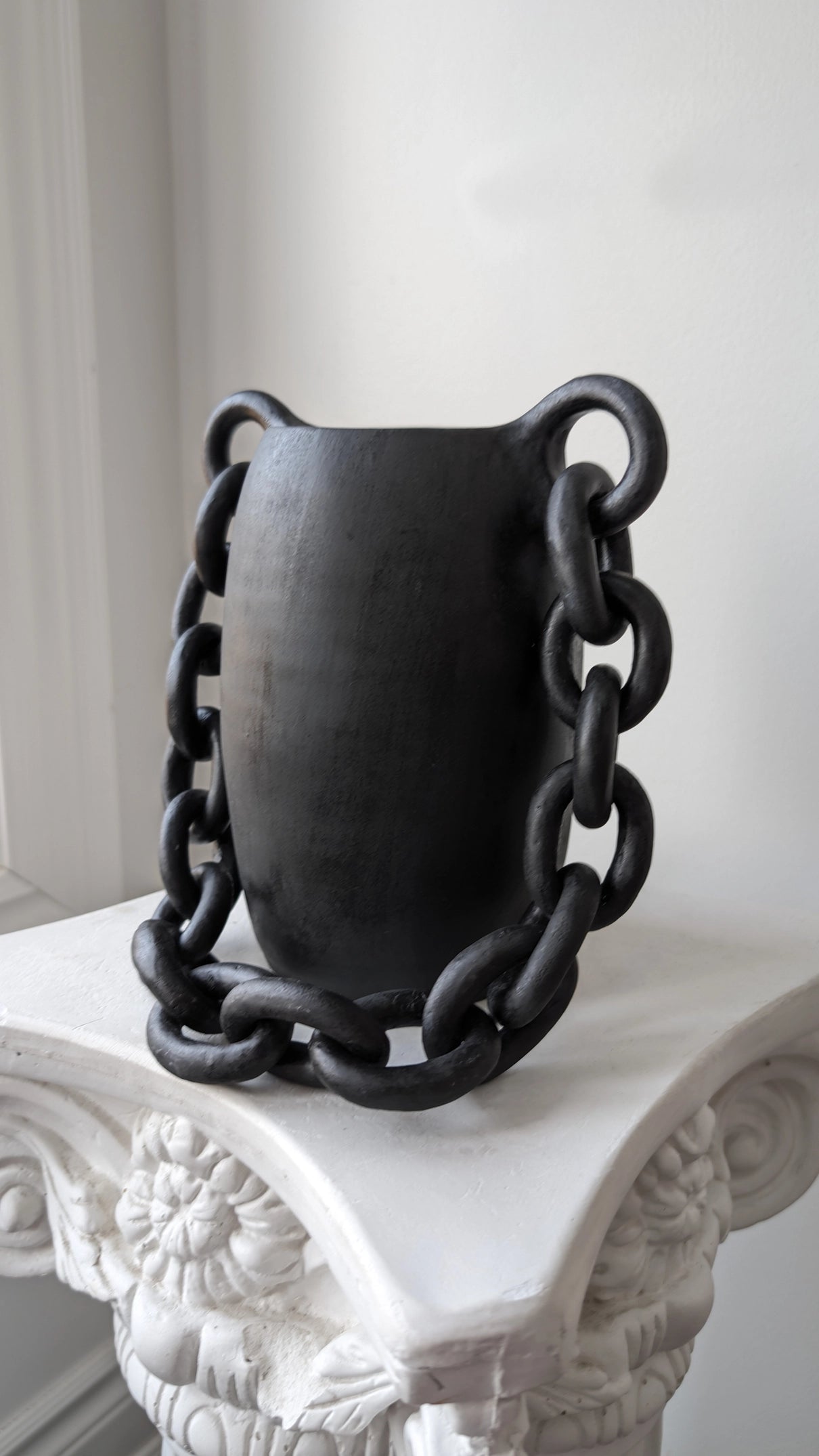 Talk about a piece no one else has and everyone wants. Add a touch of charm to your decor with this unique decorative vase, complete with a chain accent. It's the perfect gift for any occasion.
