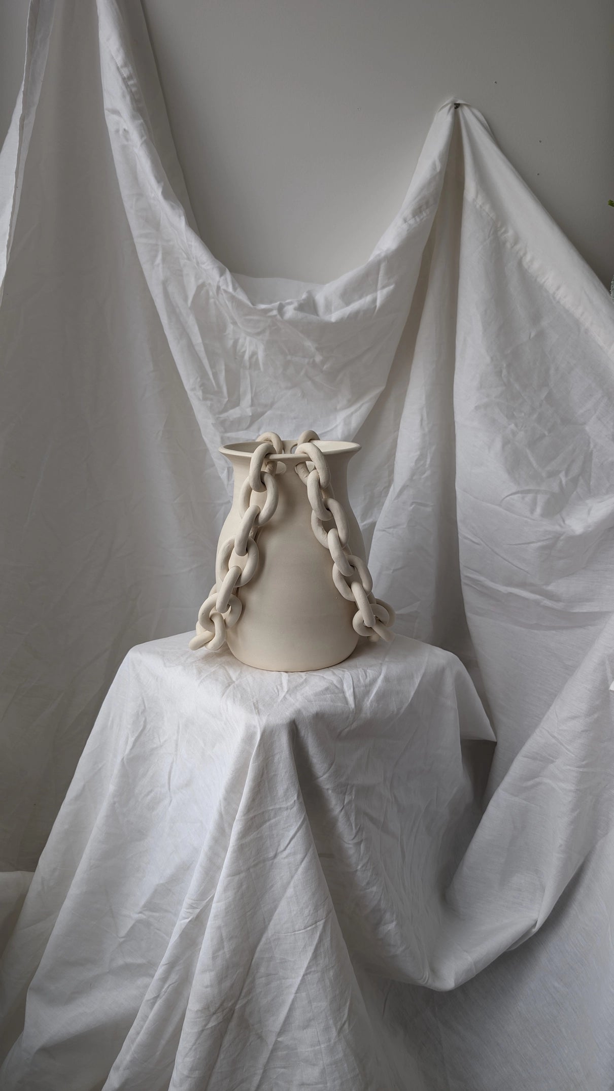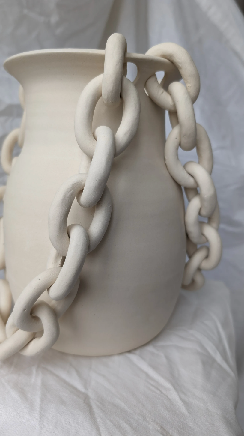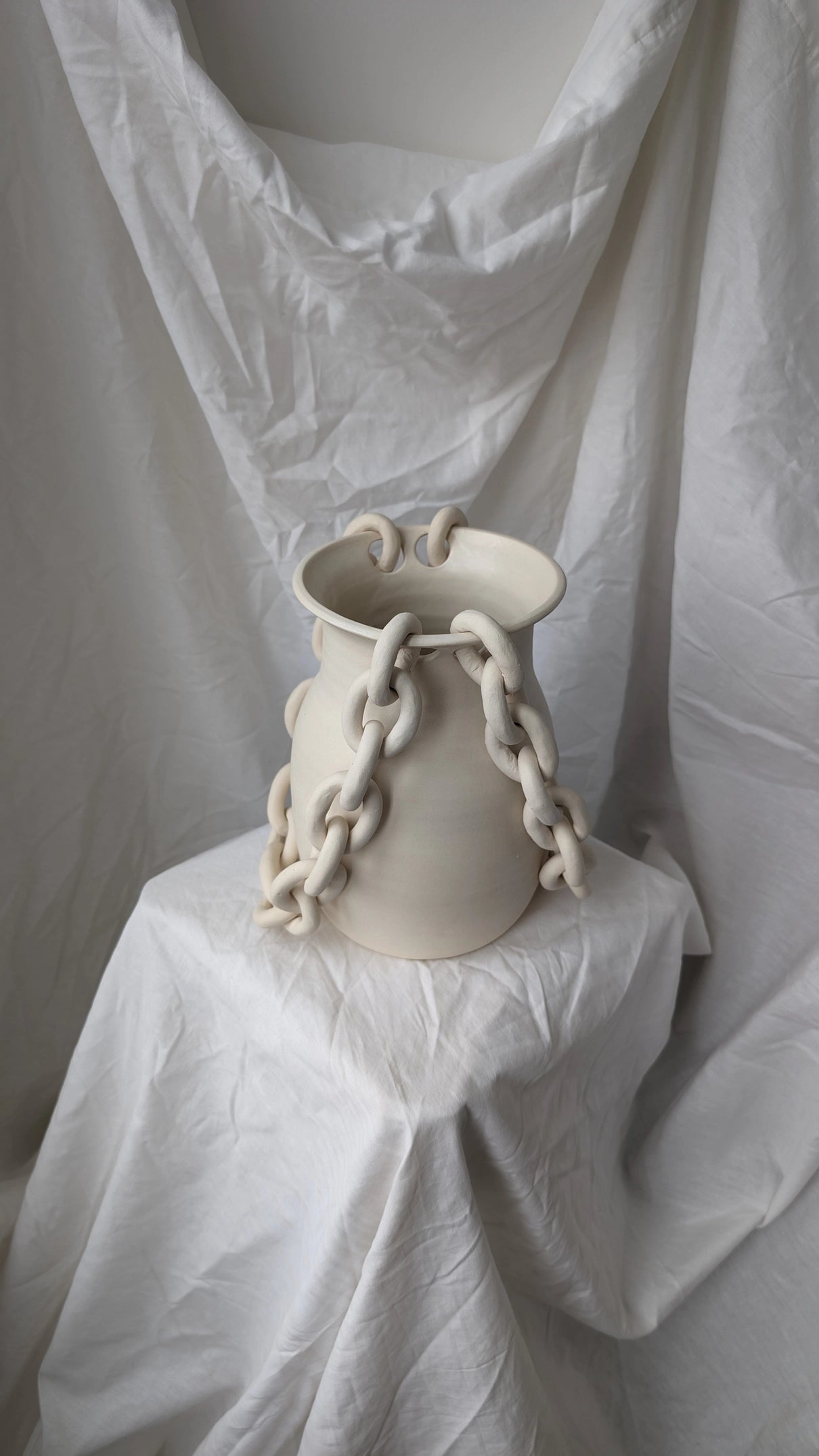 Talk about a piece no one else has and everyone wants. Add a touch of charm to your decor with this unique decorative vase, complete with a chain accent. It's the perfect gift for any occasion.