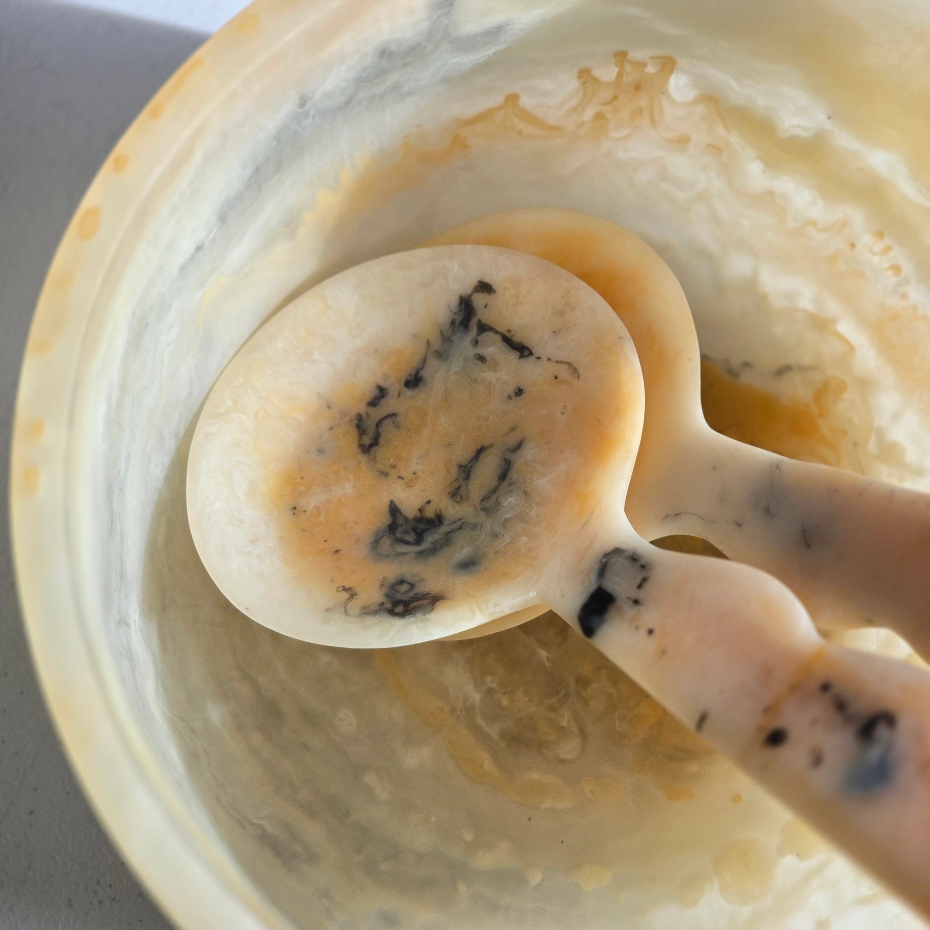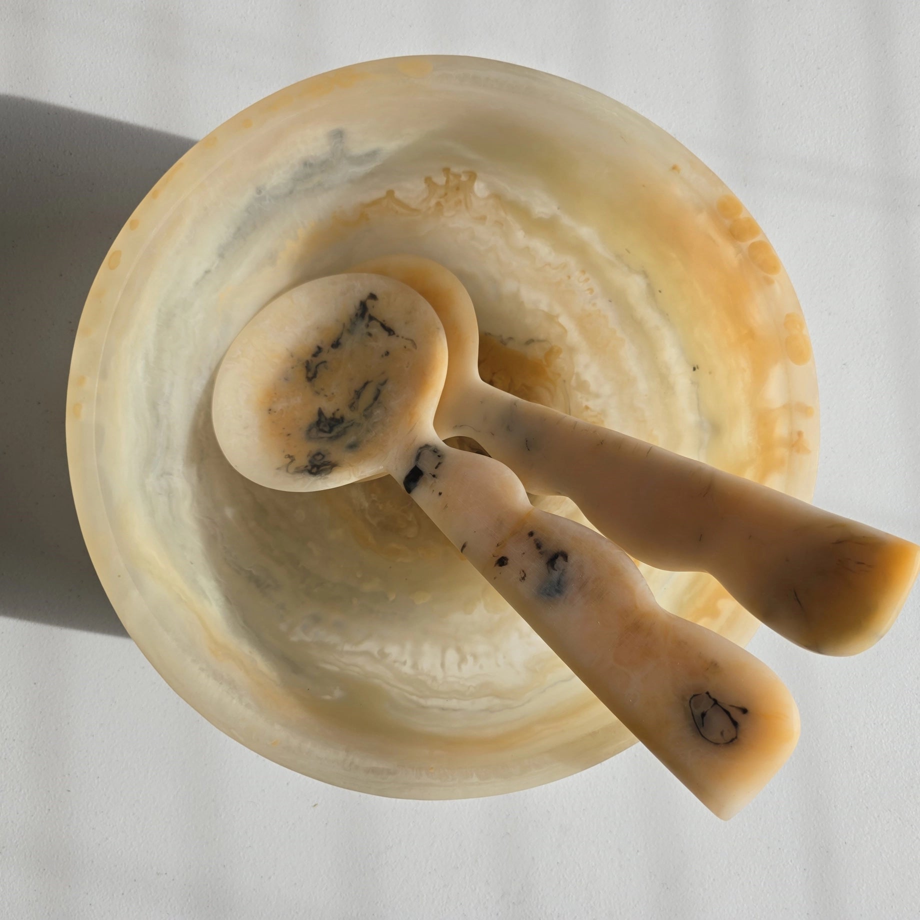 Large Hand Poured Resin Salad Serving Bowl & Server