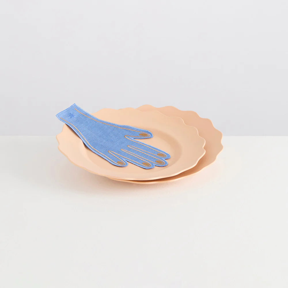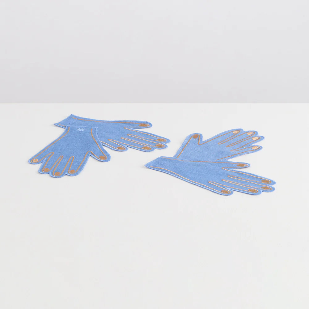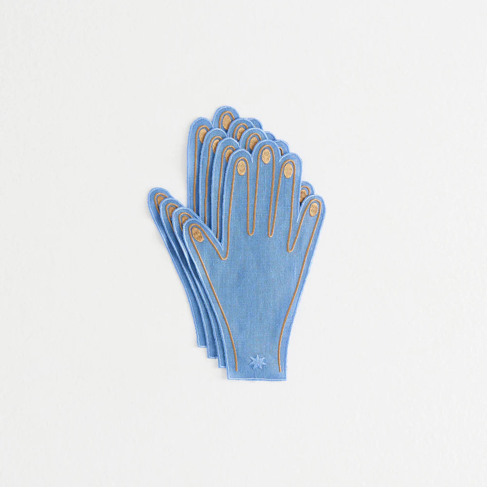 Up for a cocktail challenge? Once you've piled on the hors d'oeuvres, these sky and caramel napkins are here to help with a gentle dab. Woven from sustainable European-flax linen and stonewashed to buttery softness, they feature fine satin stitch embroidery. Sold as a set of 4.