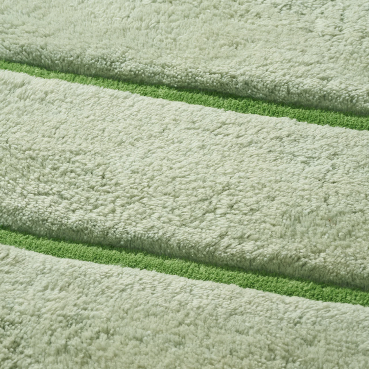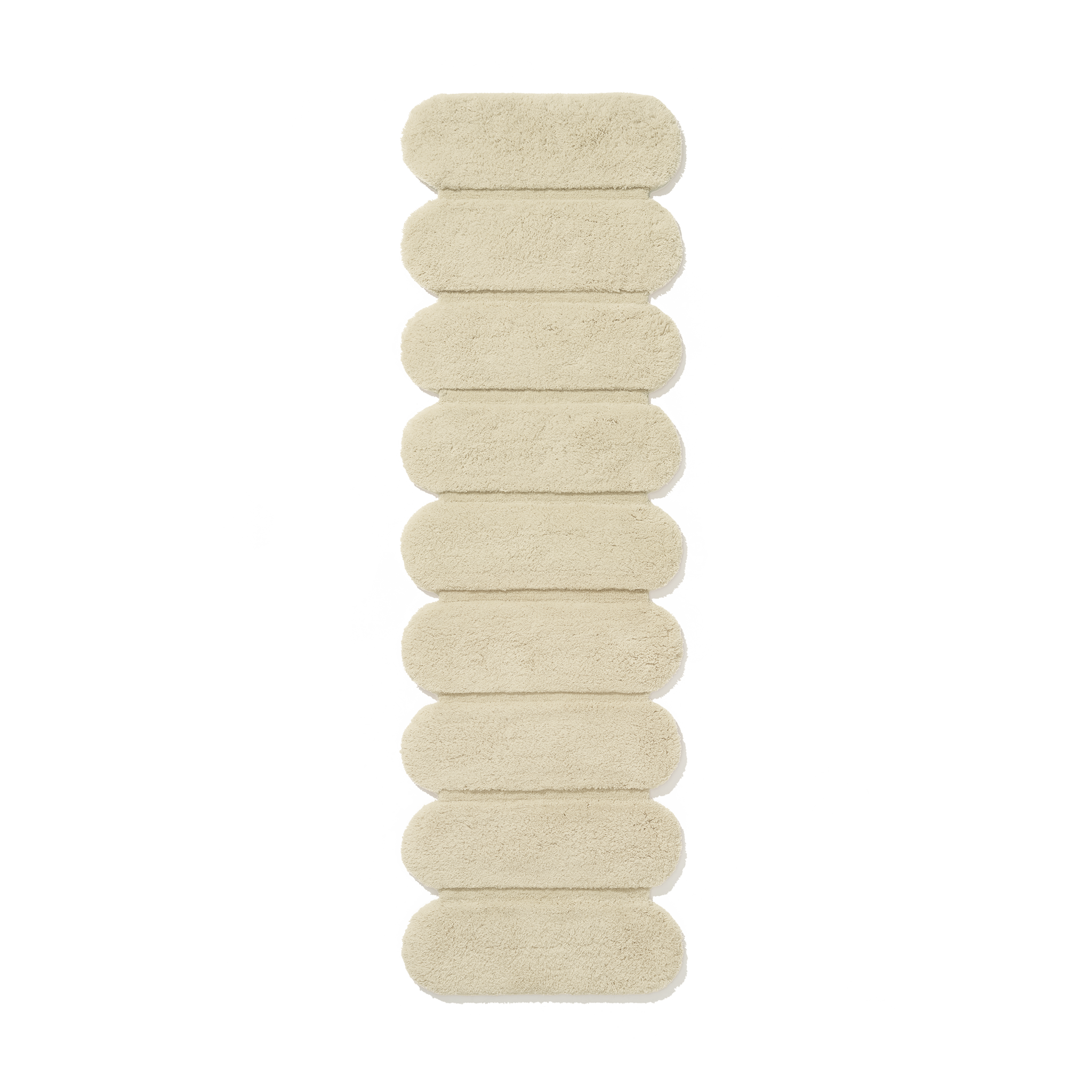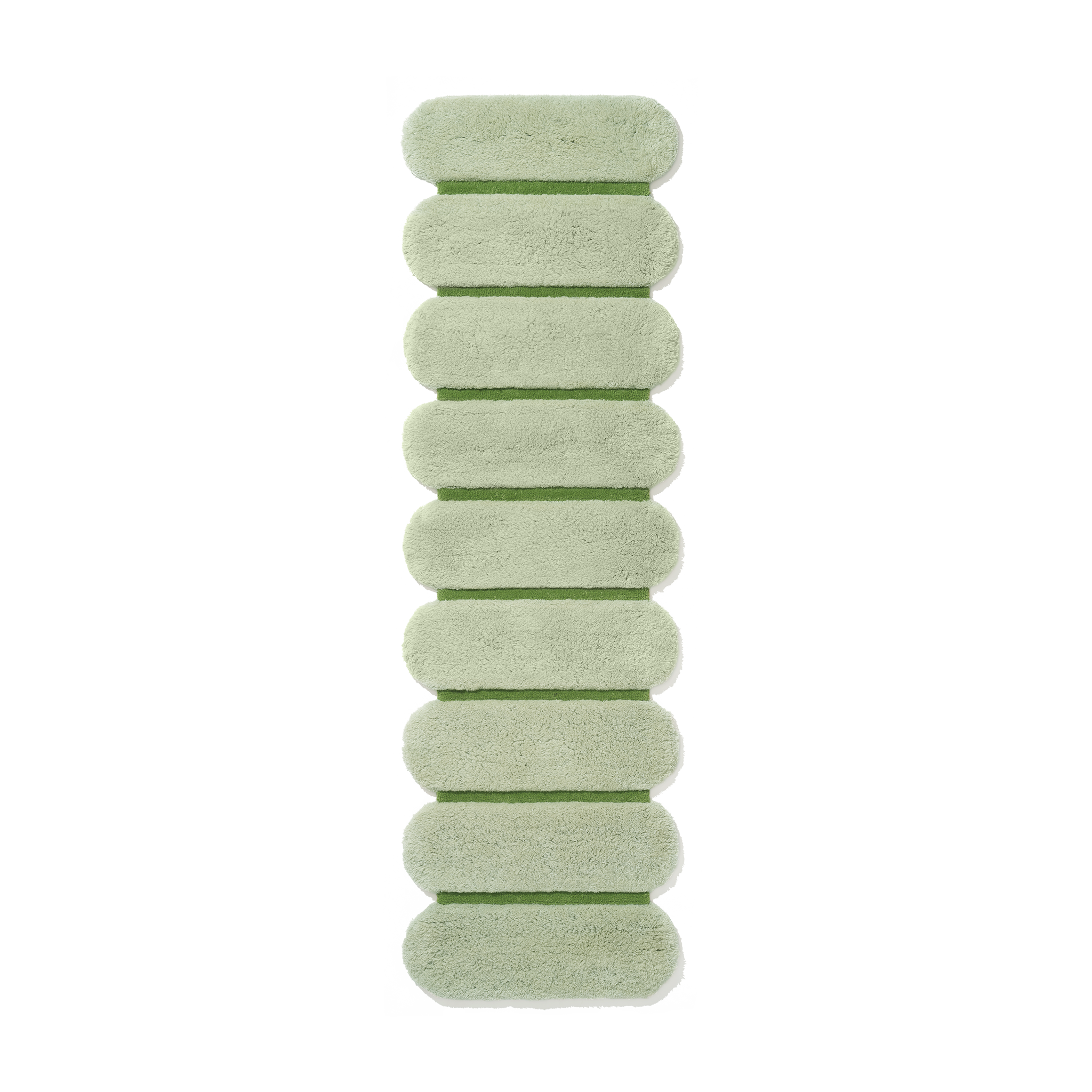 The Ribbed Runner, a macro look into the ridges of a classic ribbed wool knit. Featuring alternating rows of height that create a raised textural and visual pattern. Short horizontal lines are used throughout to balance the length of the base while creating an immersive physical pattern. Comes in two color options: Ecru & Mantis.