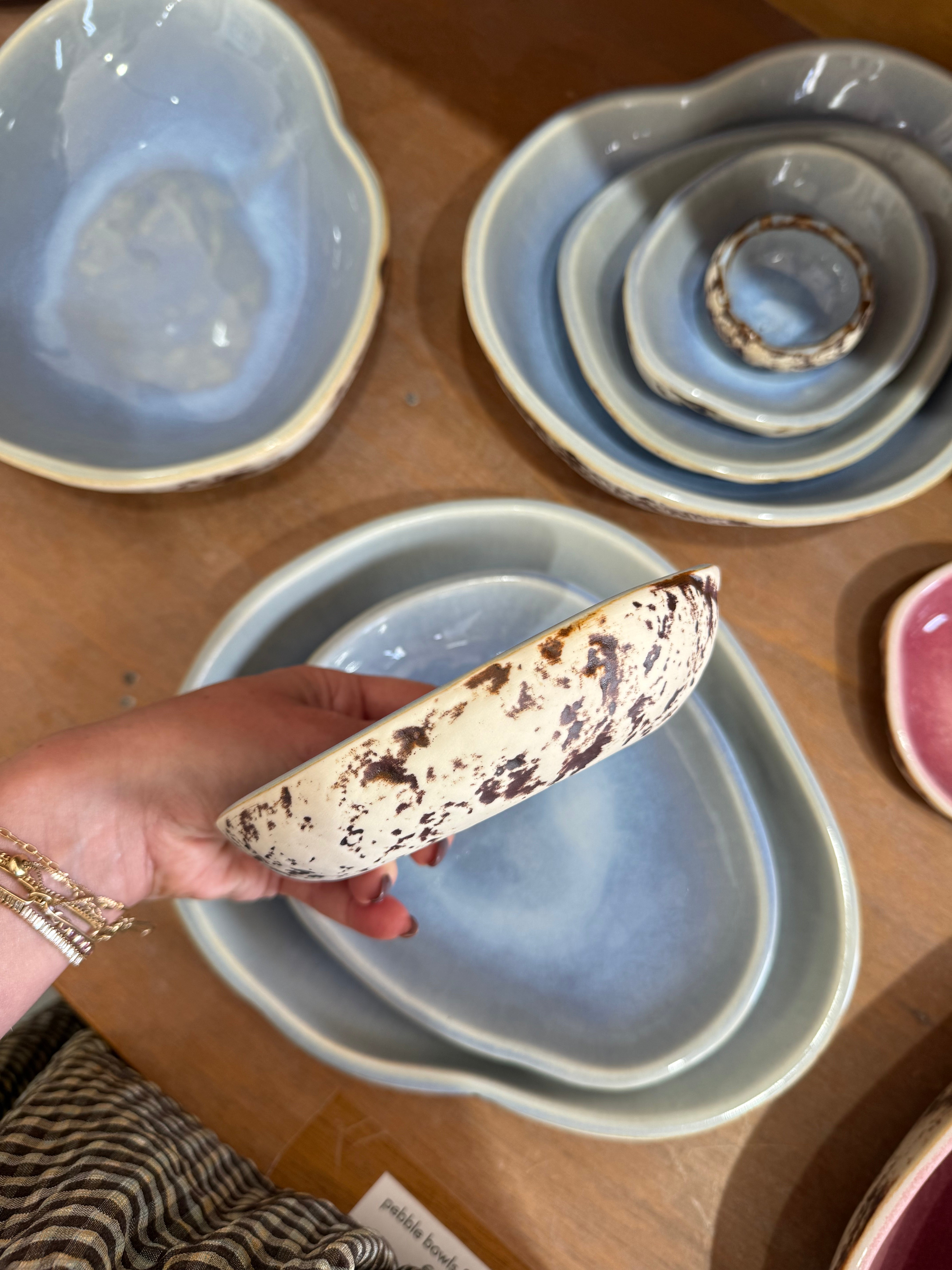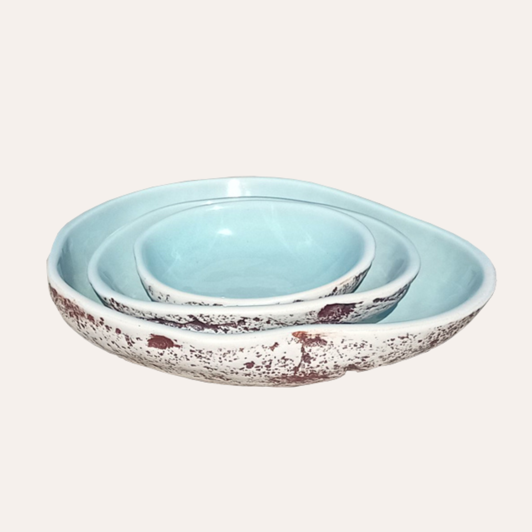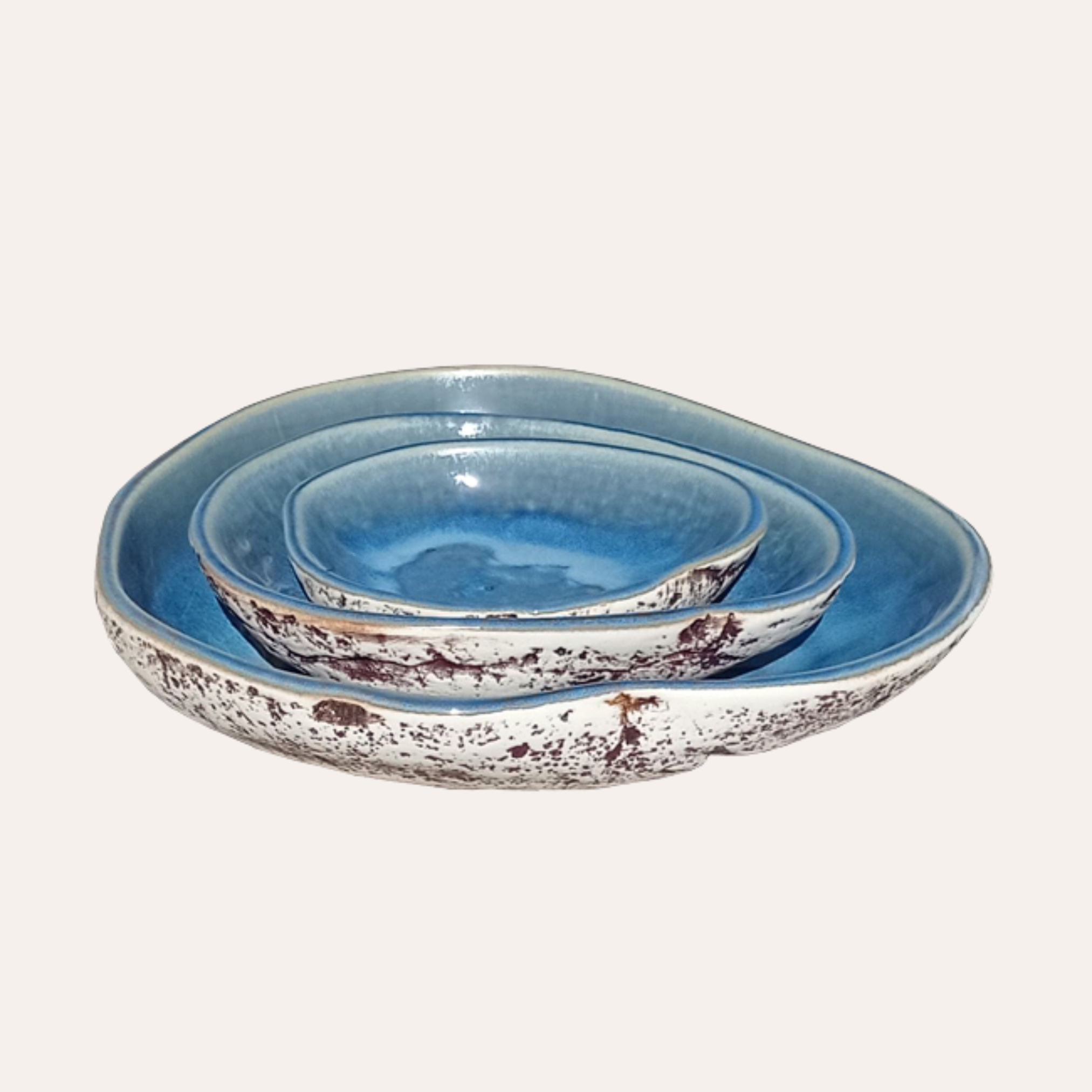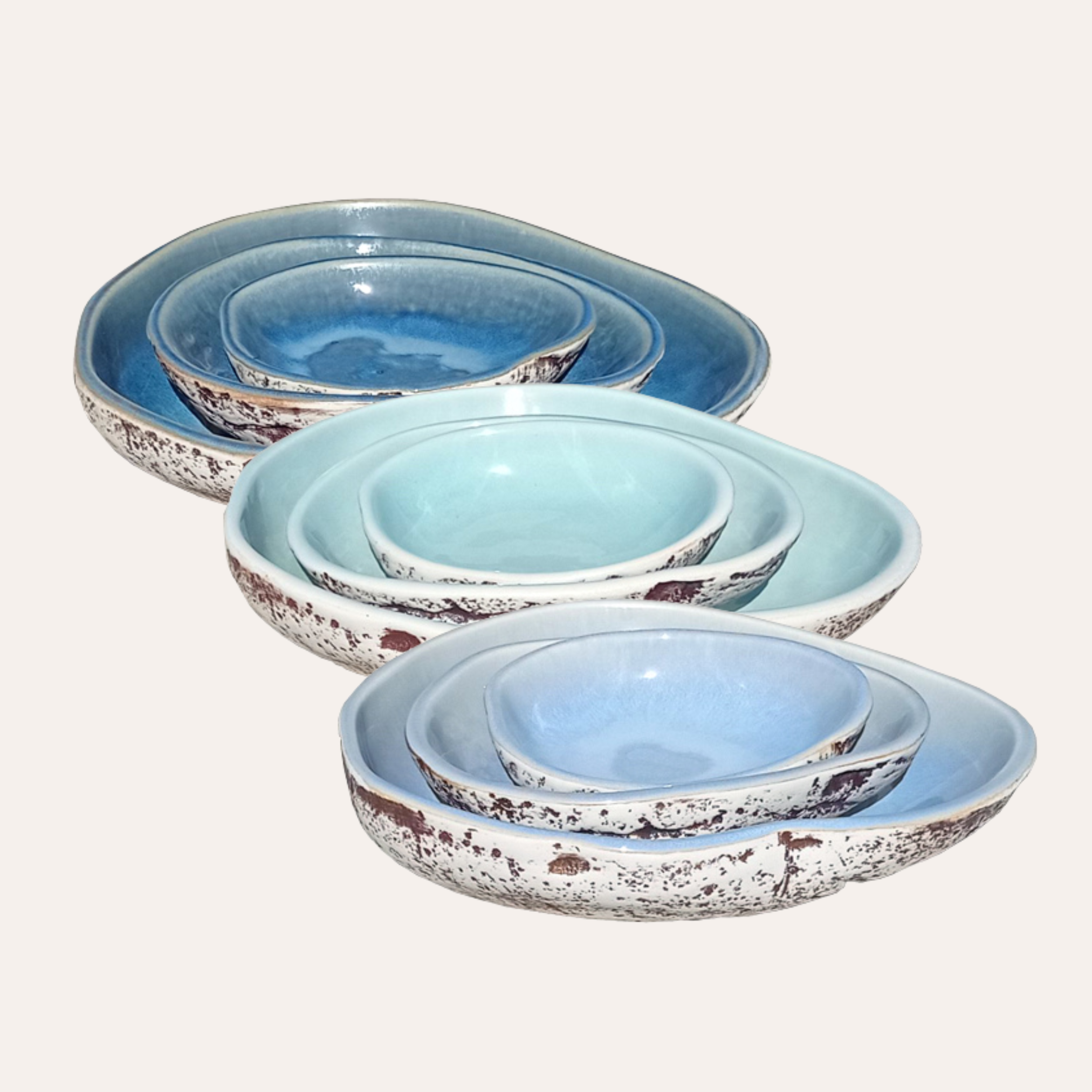 Handcrafted in Sifnos, Greece by the renowned Kalogirou family, this set of three pebble bowls brings Mediterranean charm and tradition to your table. Made from the island’s famous refractory clay, each is uniquely shaped by skilled artisans, reflecting over a century of ceramic heritage. With versatile sizes perfect for salads, sides, or snacks, these elegant bowls bring timeless beauty of Greek craftsmanship to your table.