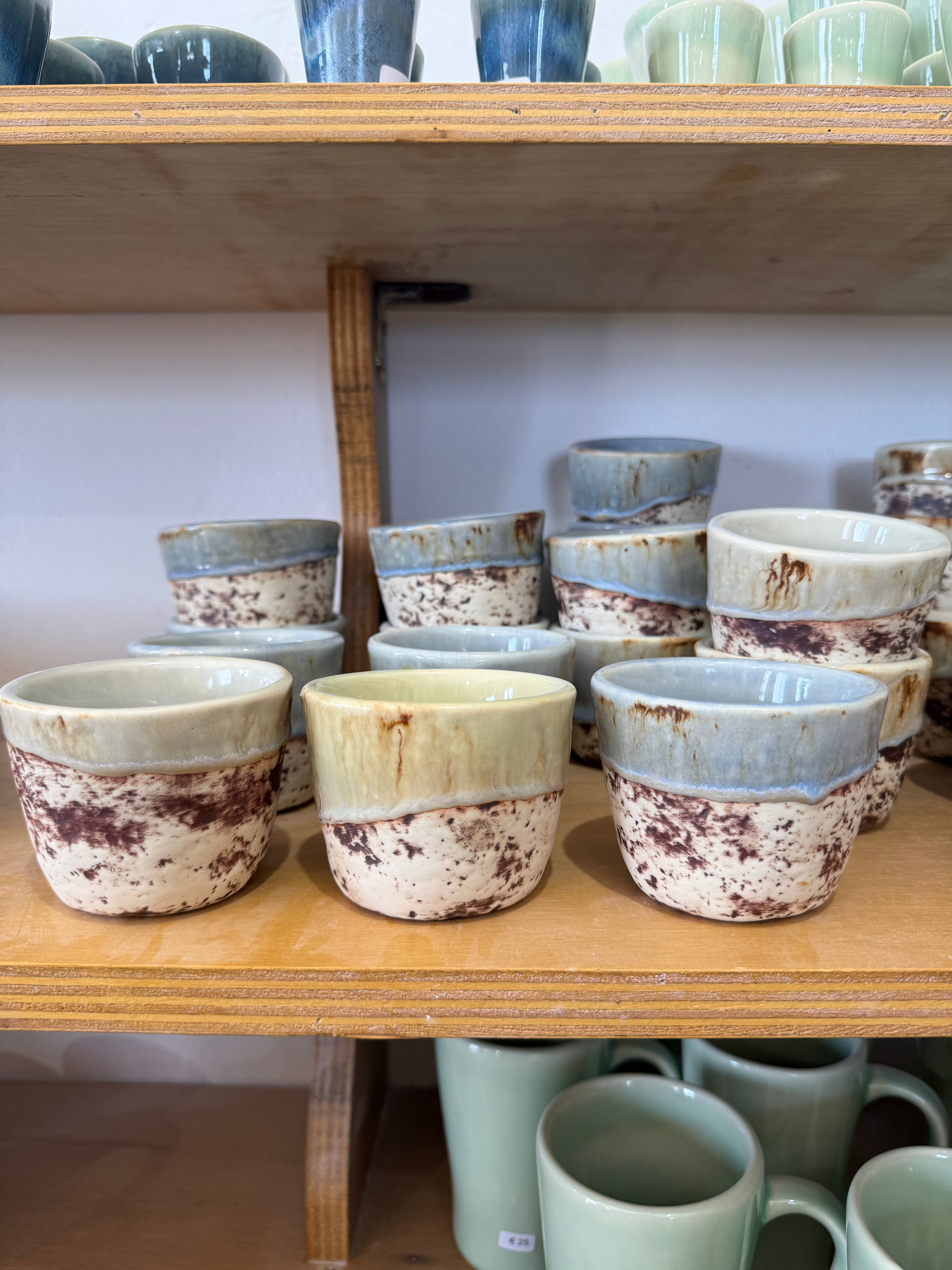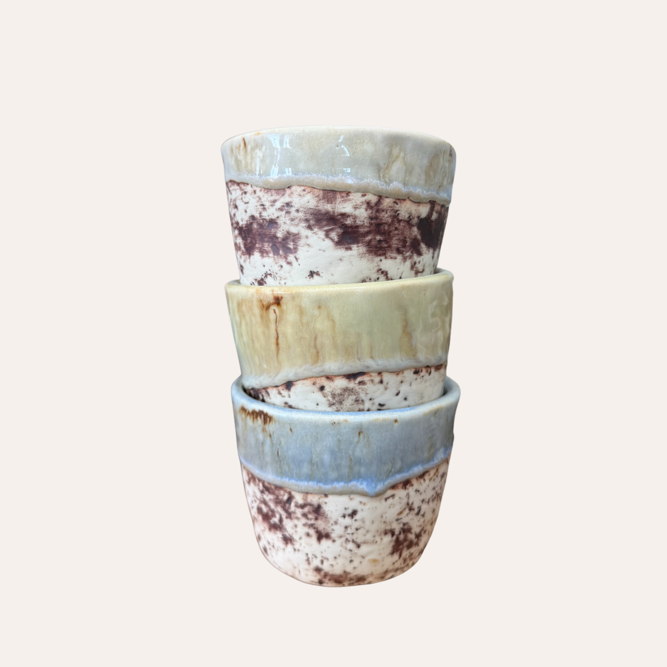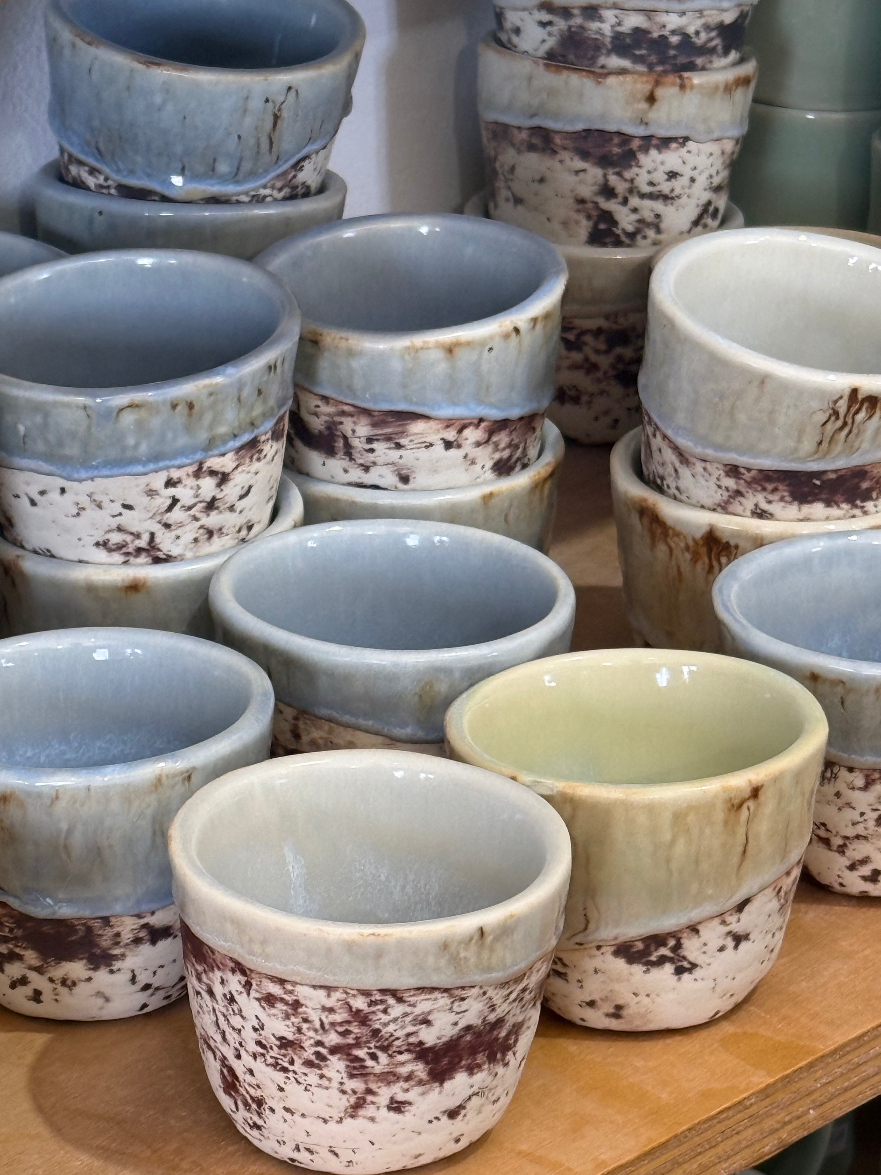 Handcrafted in Sifnos, Greece by the Kalogirou family, these pebble mugs feature a unique textured exterior and a glazed interior that drips elegantly over the rim. With a 120ml capacity, they’re perfect for double espresso, wine, or any favorite drink. Available in three colors and sold individually, each mug is microwave and dishwasher safe, combining everyday function with the timeless beauty of Greek artisan pottery.